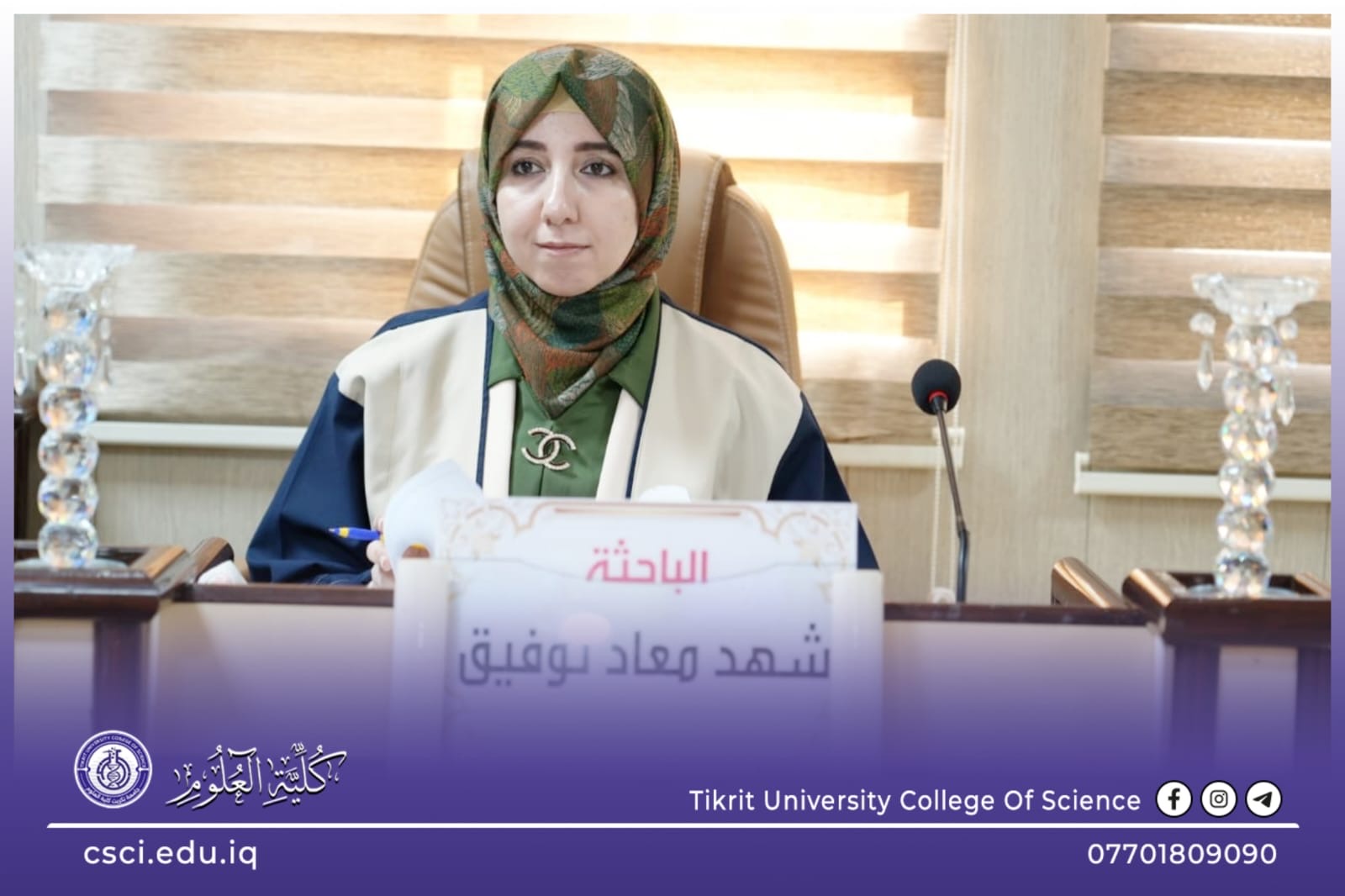 نوقشت في كلية العلوم قسم علوم الحياة اطروحة الدكتوراه (التعرف الجزيئي على العقدية القيحية وعلاقتها بالاستجابة المناعية لدى الأطفال المصابين بعدوى البلعوم) للباحثة (شهد معاد توفيق)
