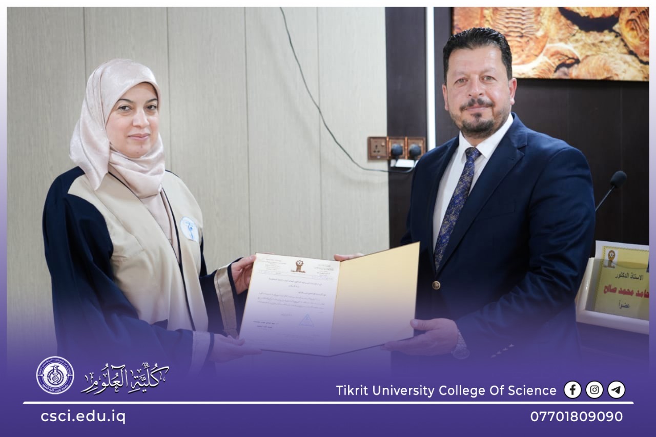 نوقشت في كلية العلوم قسم الكيمياء اطروحة دكتوراه (التخثر الكهربائي- الامتزاز تقنية فعالة لتقدير وازالة الفينول الرصاص والكادميوم من مياه الصرف الصحي النفط) للباحث (زياد خلف عبد الله)