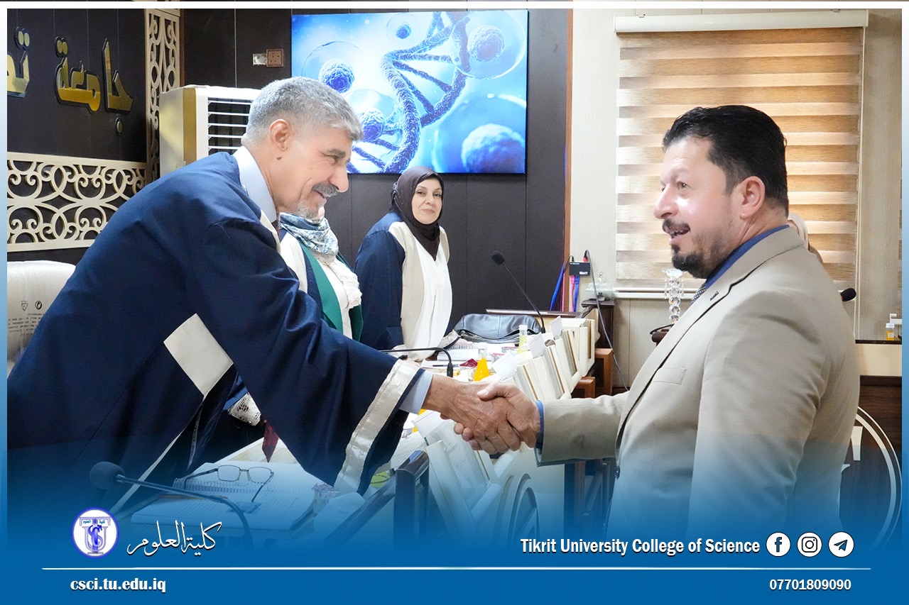 نوقشت في كلية العلوم قسم علوم الحياة اطروحة الدكتوراه (انتاج الجسيمات النانوية من المستخلص المائي لبعض الفطريات الكبيرة العراقية وتقييم فاعليتها البايولوجية) للباحثة (اديبة شريف عبد الرحمان)