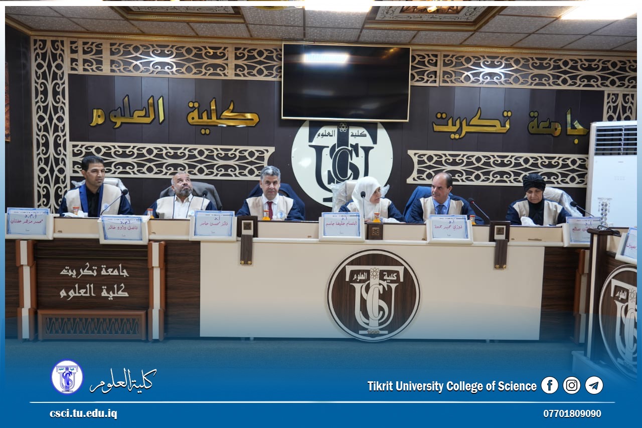 نوقشت في كلية العلوم قسم الكيمياء اطروحة دكتوراه (تحضير مشتقات عضوية جديدة تحتوي حلقة غير متجانسة ودراسة بعض الخصائص الإلكترونية والبلورية السائلة لها) للباحث (ستار جبير معيوف)