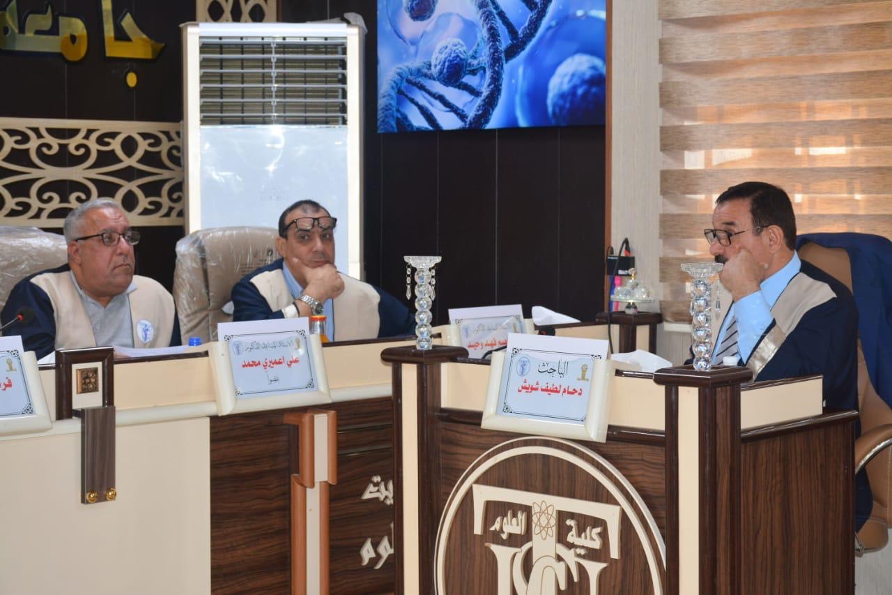 نوقشت في كلية العلوم قسم علوم الكيمياء اطروحة الدكتوراه (تحضير وتشخيص متراكب نانوي فائق المغناطيسية مغطى بالكيتوسان لتوصيل دواء الميتفورمين ودراسة تأثيره على الجرذان المصابة بداء السكري من النوع الثاني المستحث بالالوكسان) للباحث (دحام لطيف شويش)