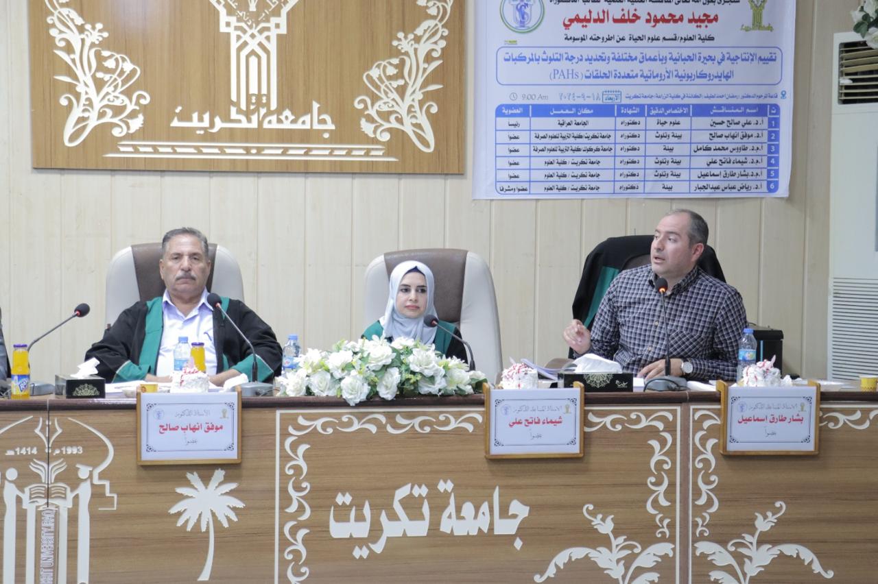 نوقشت في كلية العلوم قسم علوم الحياة اطروحة الدكتوراه (تقييم الإنتاجية فــــــي بحيرة الحبانية وبأعماق مختلفة وتحديد درجة التلوث بالمركبات الهايدروكاربونية الاروماتية متعددة الحلقات) للباحث (مجيد محمود خلف الدليمي)