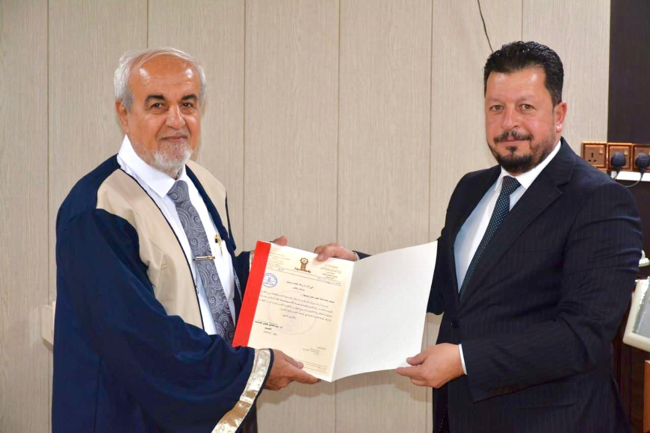 نوقشت في جامعة تكريت كلية العلوم رسالة طالب الدكتوراه (احمد عبد الكريم احمد) الموسومة (تصنيع ودراسة خصائص المفرق الهجين cus\n-si و cus\Psi واستخدامه في تطبيقات الكواشف الضوئية)