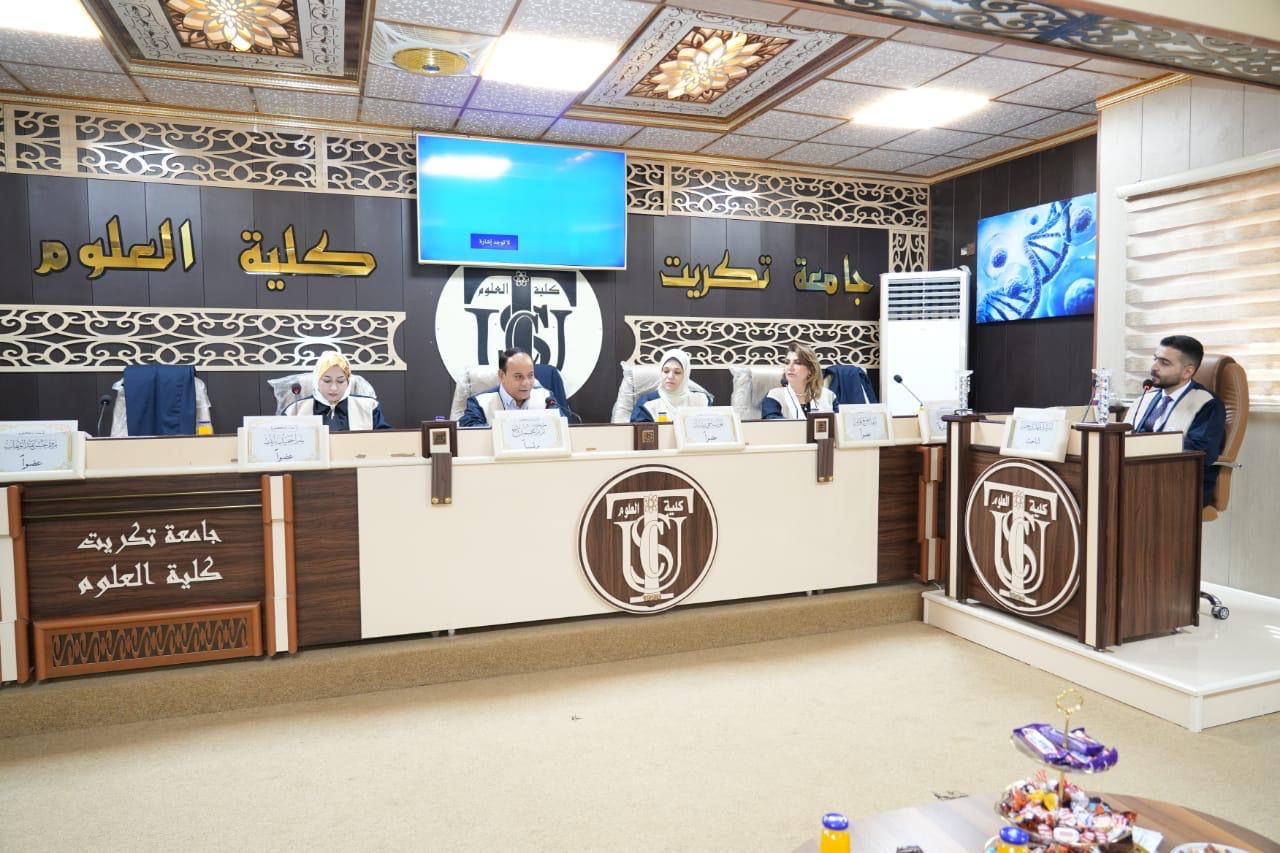 بحضور الاستاذ الدكتور وعد محمود رؤوف رئيس جامعة تكريت نوقشت في كلية العلوم قسم علوم الحياة اطروحة دكتوراه تناقش (تصنيع جسيمات نانوية بالطريقة الخضراء وتوصيفها وتقييم فعاليتها التثبيطية لبعض الخطوط الخلوية وبكتريا Pseudomonas aeruginosa المعزولة من الجروح والحروق) للباحث (ارشد مهدي حمد)