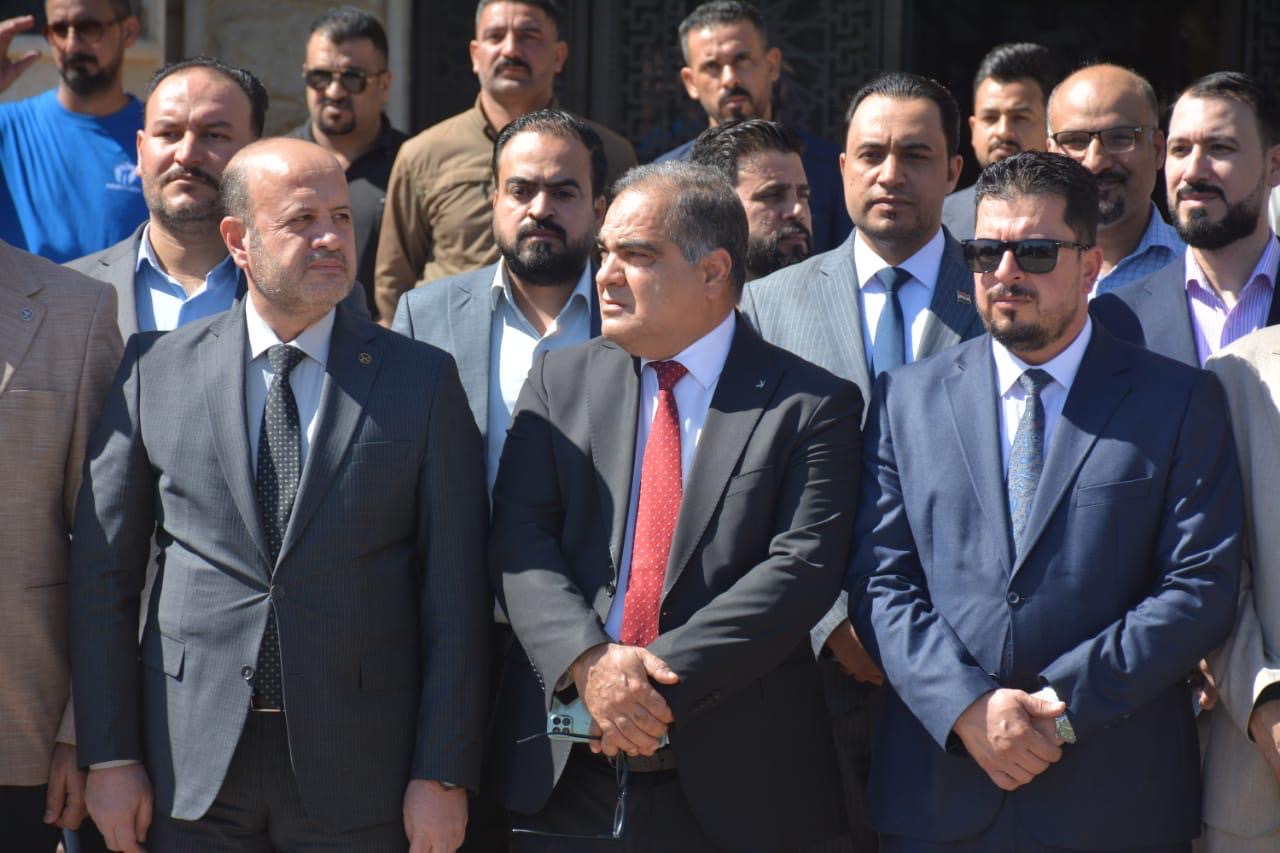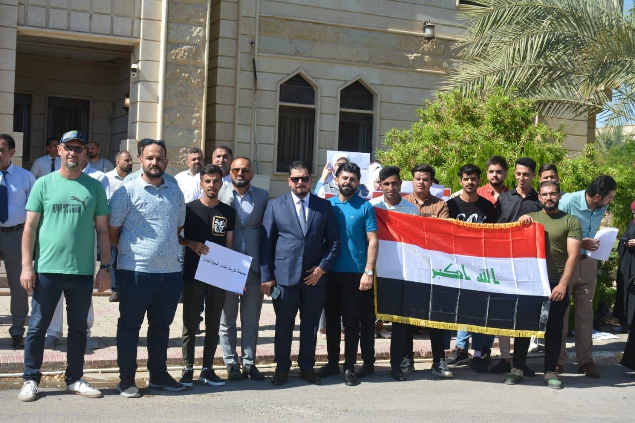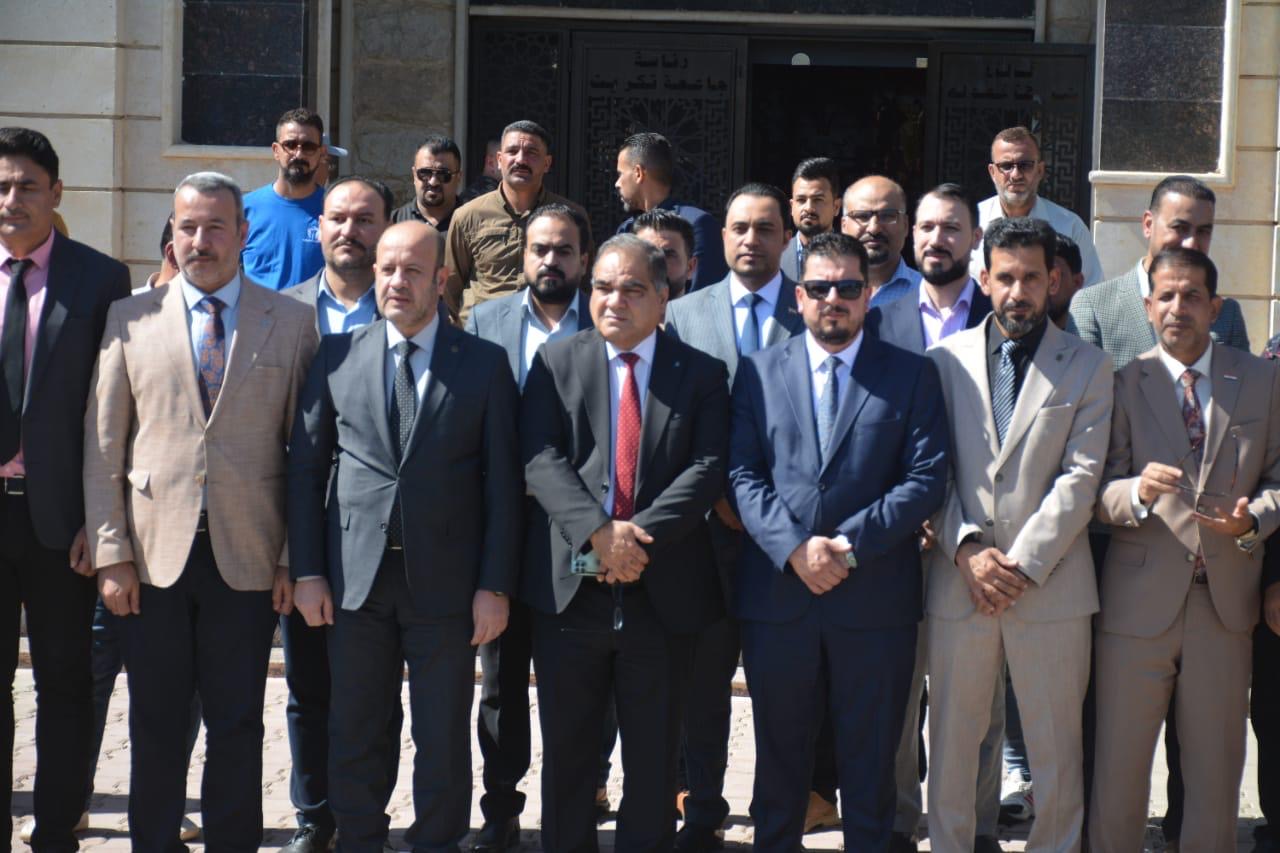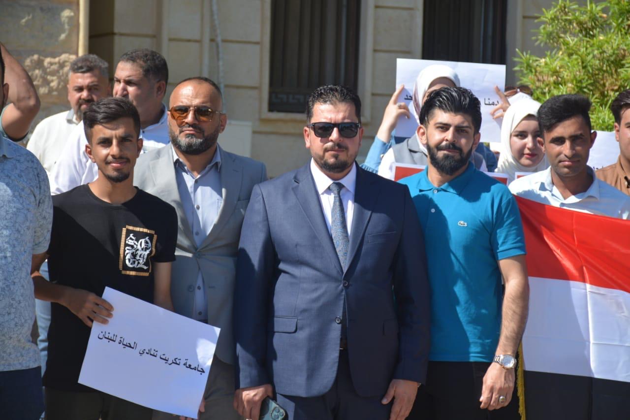 تنفيذا لتوجيهات وزارة التعليم العالي والبحث العلمي نظمت جامعة تكريت بحضور الاستاذ الدكتور وعد محمود رئيس جامعة تكريت والاستاذ الدكتور حسن حسين ابراهيم مساعد رئيس الجامعة للشؤون العلمية وعدد من السادة عمداء الكليات والموظفين والطلبة وقفة استنكارية واحتجاجية ضد العدوان الهمجي الذي يتعرض له الشعبين الفلسطيني واللبناني الشقيقيين على يد قوى الاحتلال والظلام