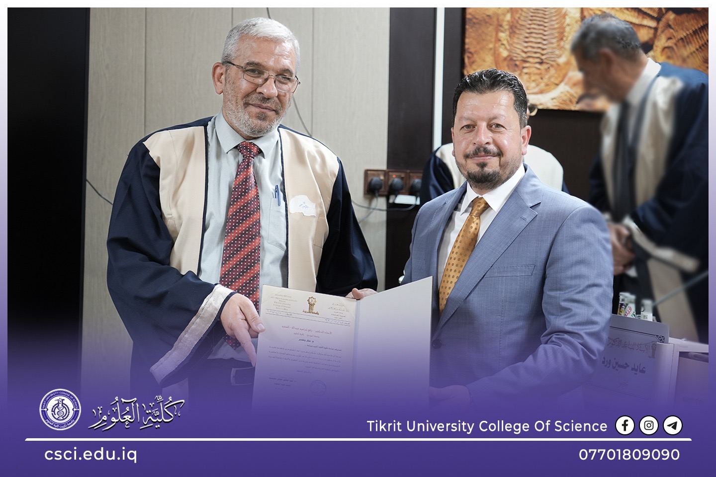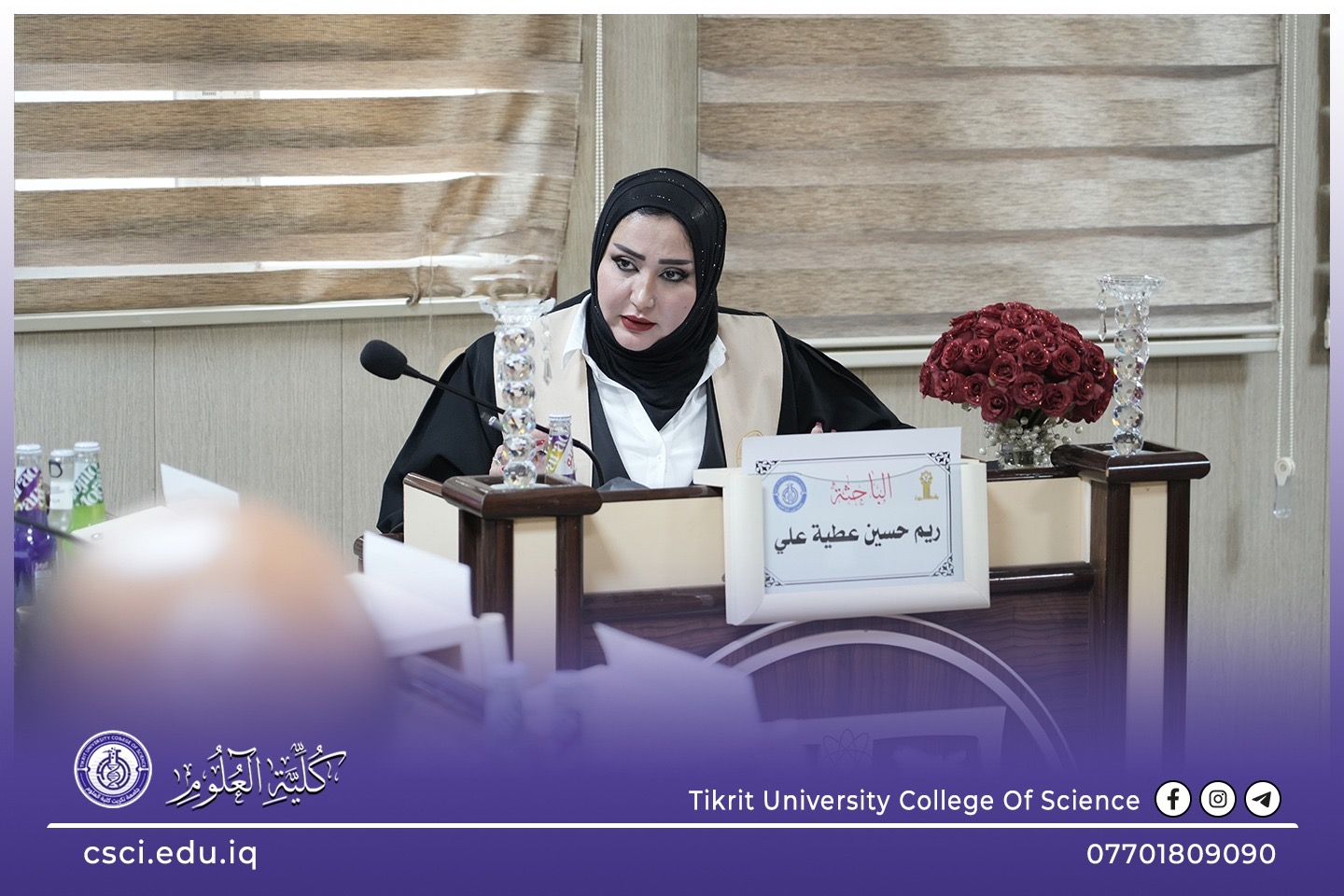 نوقشت في كلية العلوم قسم علوم الارض التطبيقية اطروحة الدكتوراه (بناء موديل تركيبي طباقي لتتابعات العصر الكريتاسي لحقل خباز النفطي/ شمال العراق) للباحثة (ريم حسين عطية)