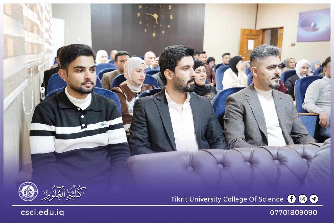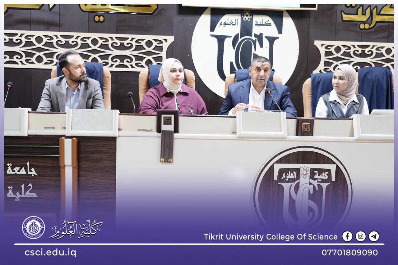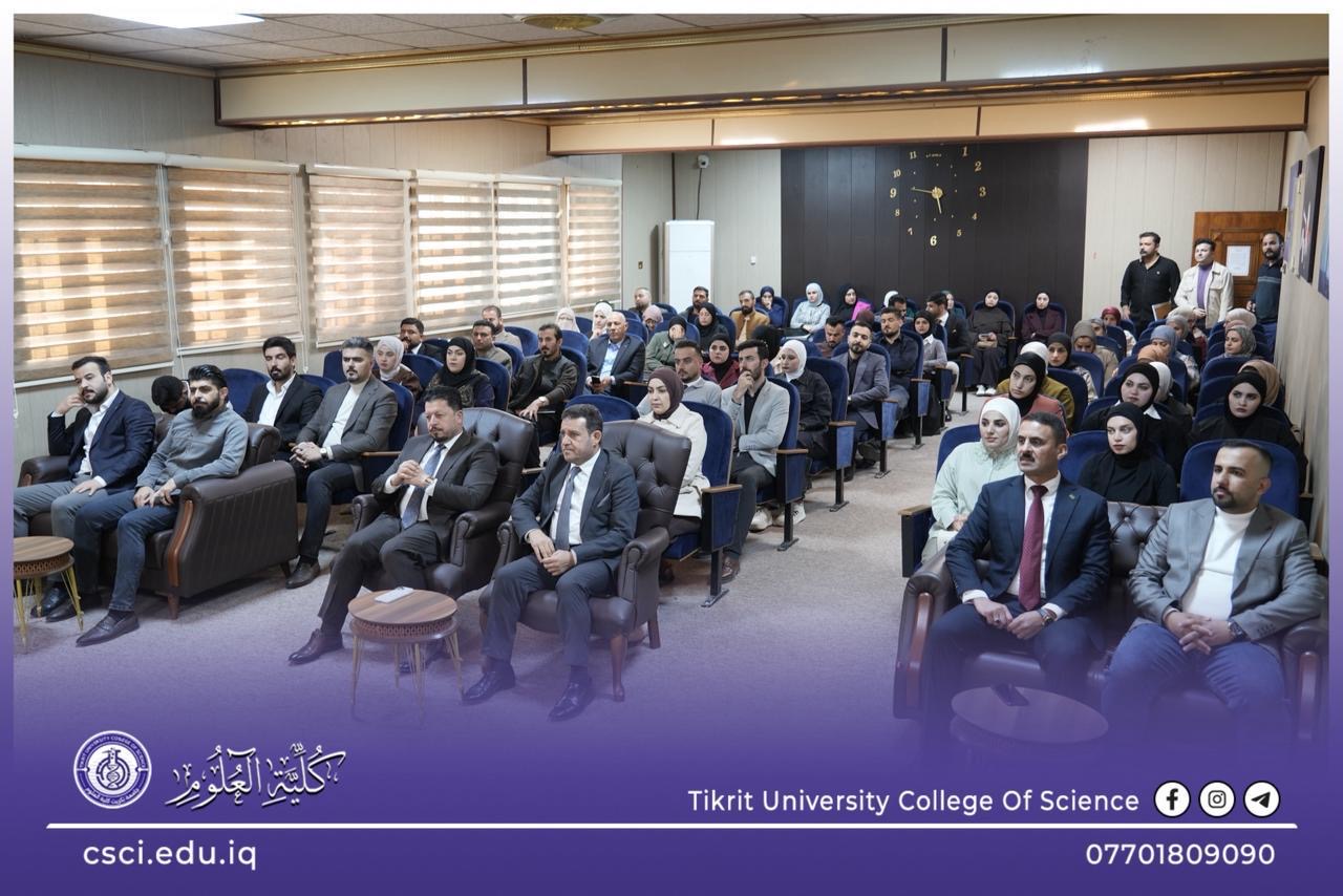 برعاية السيد رئيس جامعة تكريت، الأستاذ الدكتور وعد محمود رؤوف المحترم، وبإشراف وحضور كل من السيد عميد كلية العلوم الأستاذ الدكتور عبد الخالق علوان محيميد المحترم، والأستاذ المساعد الدكتور سياف عبد حسين المحترم أقامت كلية العلوم دورة علمية تخصصية بعنوان:
