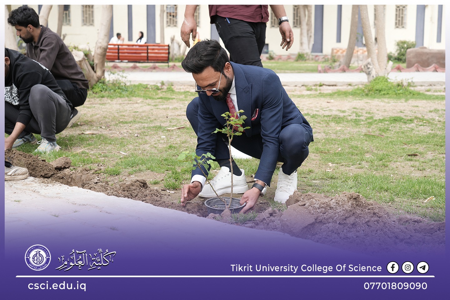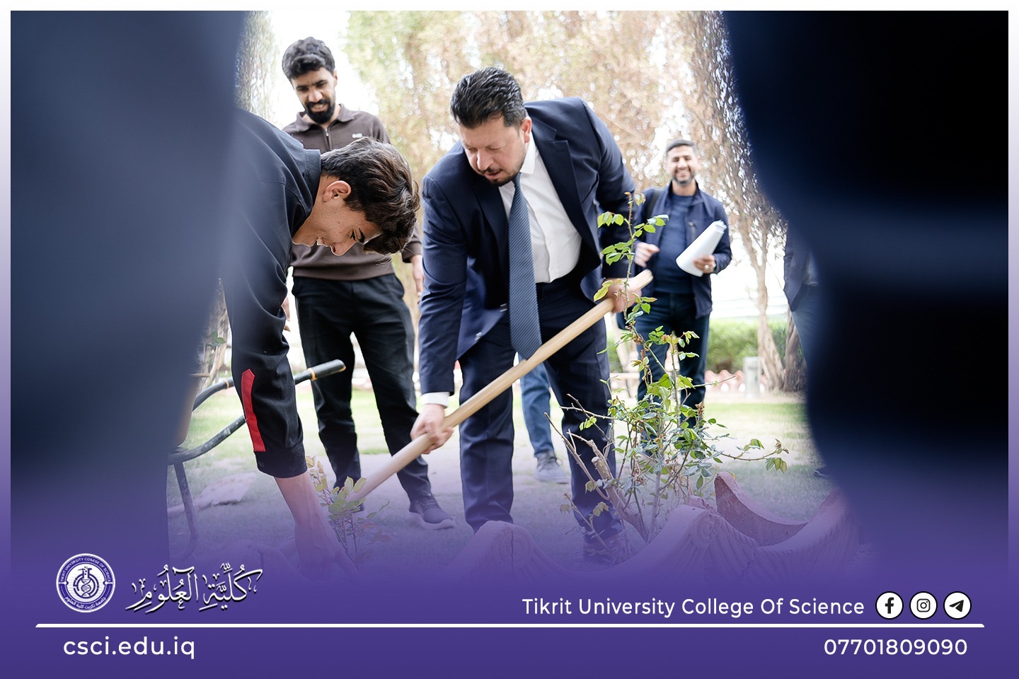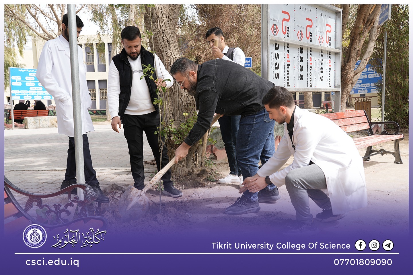 استناداً الى توجيهات رئاسة جامعة تكريت وبأشراف مباشر من الاستاذ الدكتور عبد الخالق علوان محيميد وبمناسبة يوم التشجير الوطني شرعت كلية العلوم اليوم بحملة تشجير واسعة تضمنت زراعة الشتلات والاشجار المختلفة في جميع اروقة وحدائق الكلية لاحياء هذا اليوم ضمن نهج الجامعة في زيادة المساحات الخضراء و الاهتمام بالبيئة وتقليل آثار التصحر.