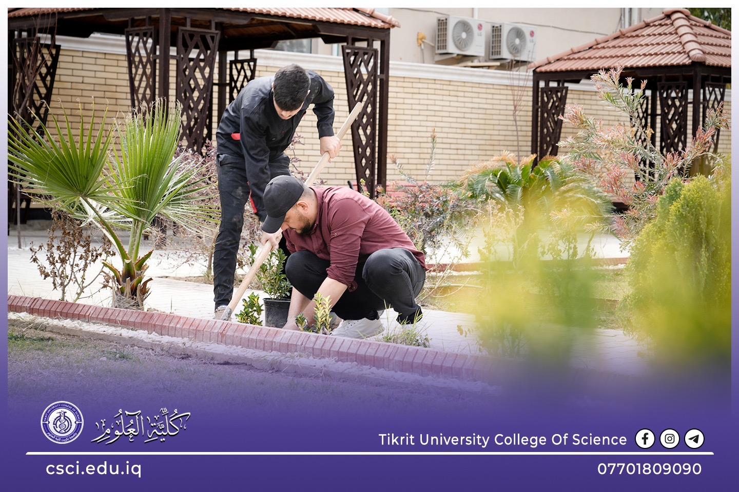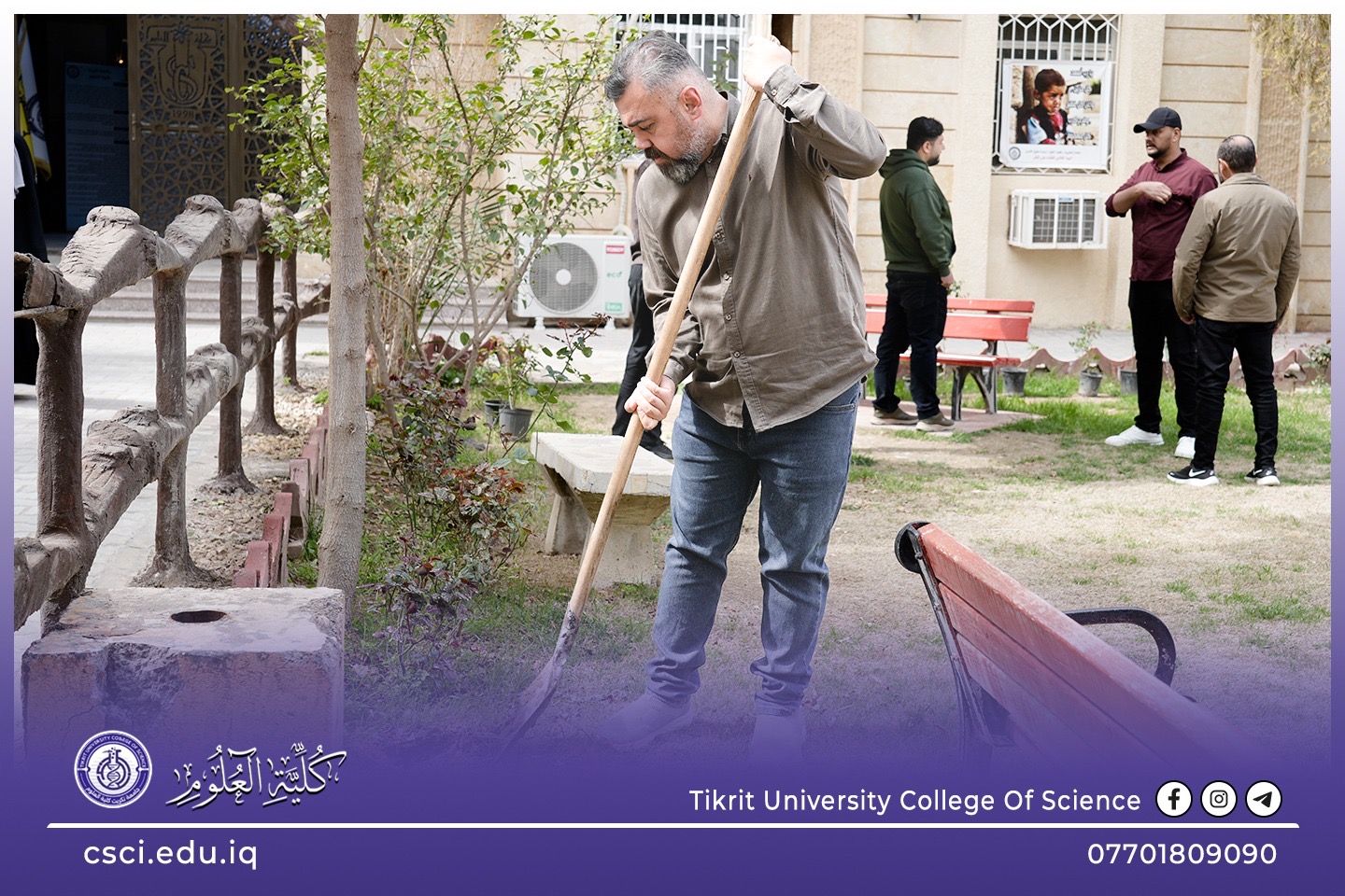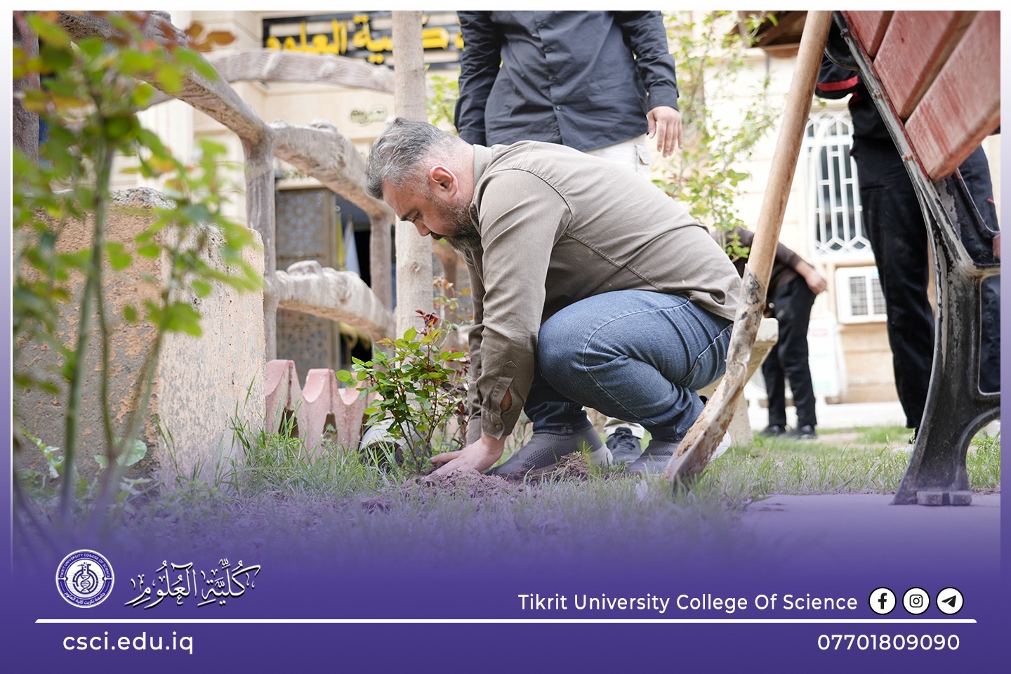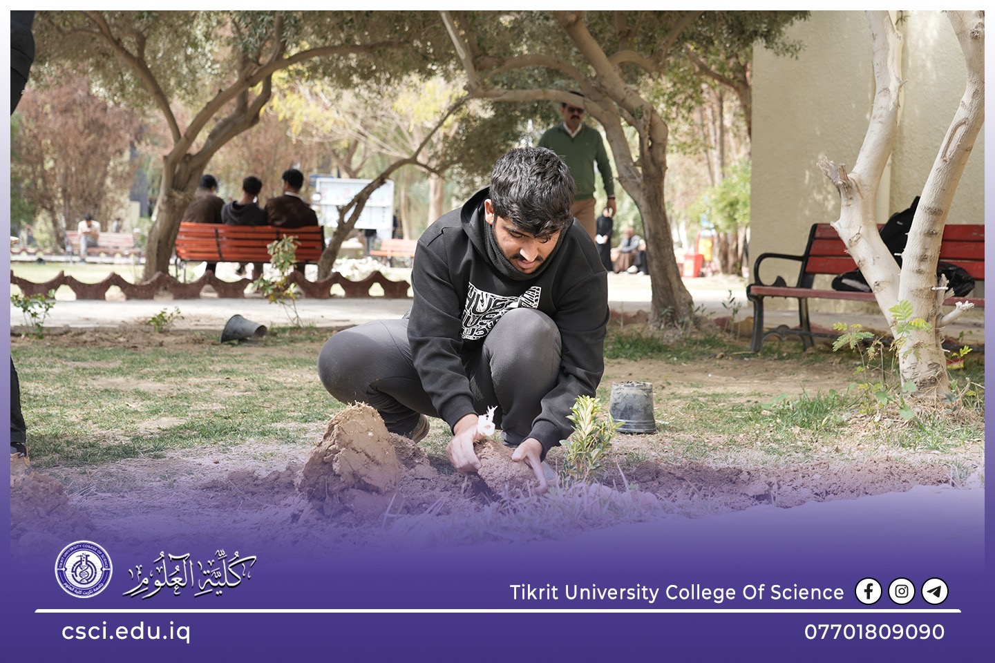 استناداً الى توجيهات رئاسة جامعة تكريت وبأشراف مباشر من الاستاذ الدكتور عبد الخالق علوان محيميد وبمناسبة يوم التشجير الوطني شرعت كلية العلوم اليوم بحملة تشجير واسعة تضمنت زراعة الشتلات والاشجار المختلفة في جميع اروقة وحدائق الكلية لاحياء هذا اليوم ضمن نهج الجامعة في زيادة المساحات الخضراء و الاهتمام بالبيئة وتقليل آثار التصحر.