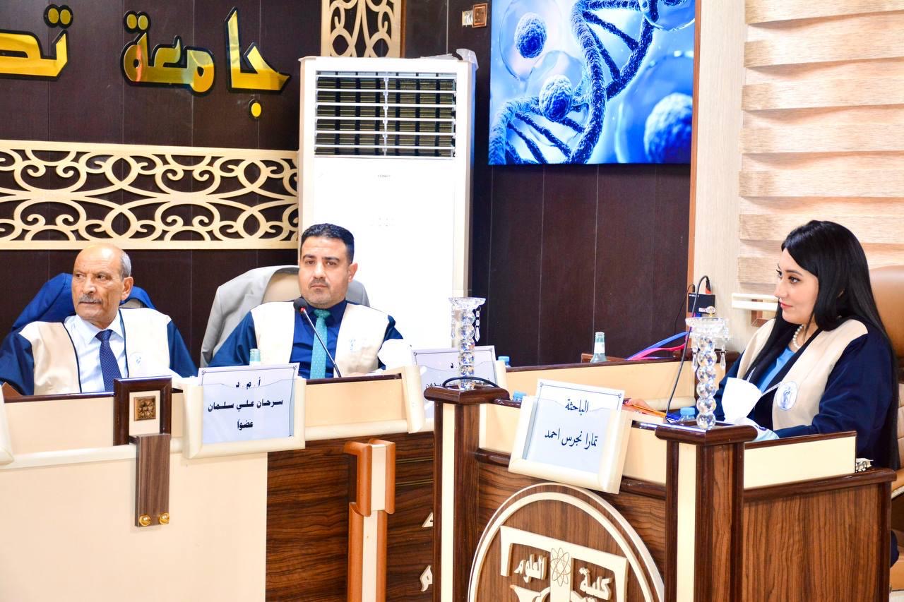 نوقشت في جامعة تكريت كلية العلوم اطروحة طالبة الدكتوراه (تمارا نجرس احمد ) الموسومة