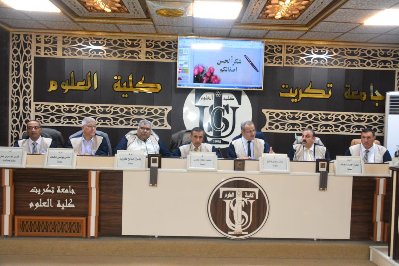 نوقشت في كلية العلوم قسم علوم الارض اطروحة الدكتوراه (دراسة رسوبية وطباقية ومكمنية لتتابعات (Turonian – Lower Campanian) في آبار مختارة من حقل باي حسن – شمال العراق) للطالب (عمر محمود عمر علاوي)