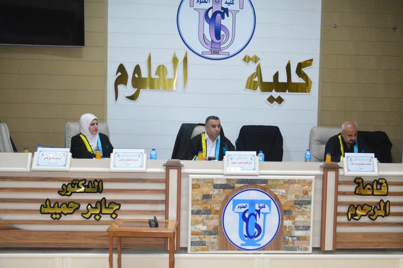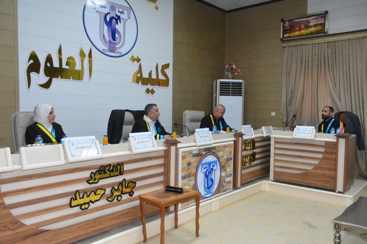 نوقشت في كلية العلوم قسم علوم الحياة رسالة الماجستير (التنــوع الحيـــوي للطحـالــب القــاعيــــة فــــي نهــر الــــزاب الأسفل/العراق) للباحث (محمود عبد الرحمن بشير)
