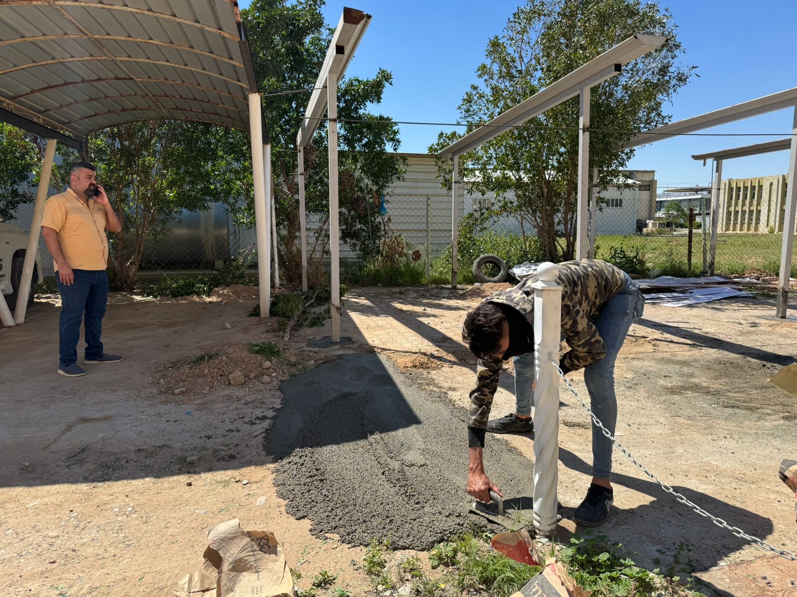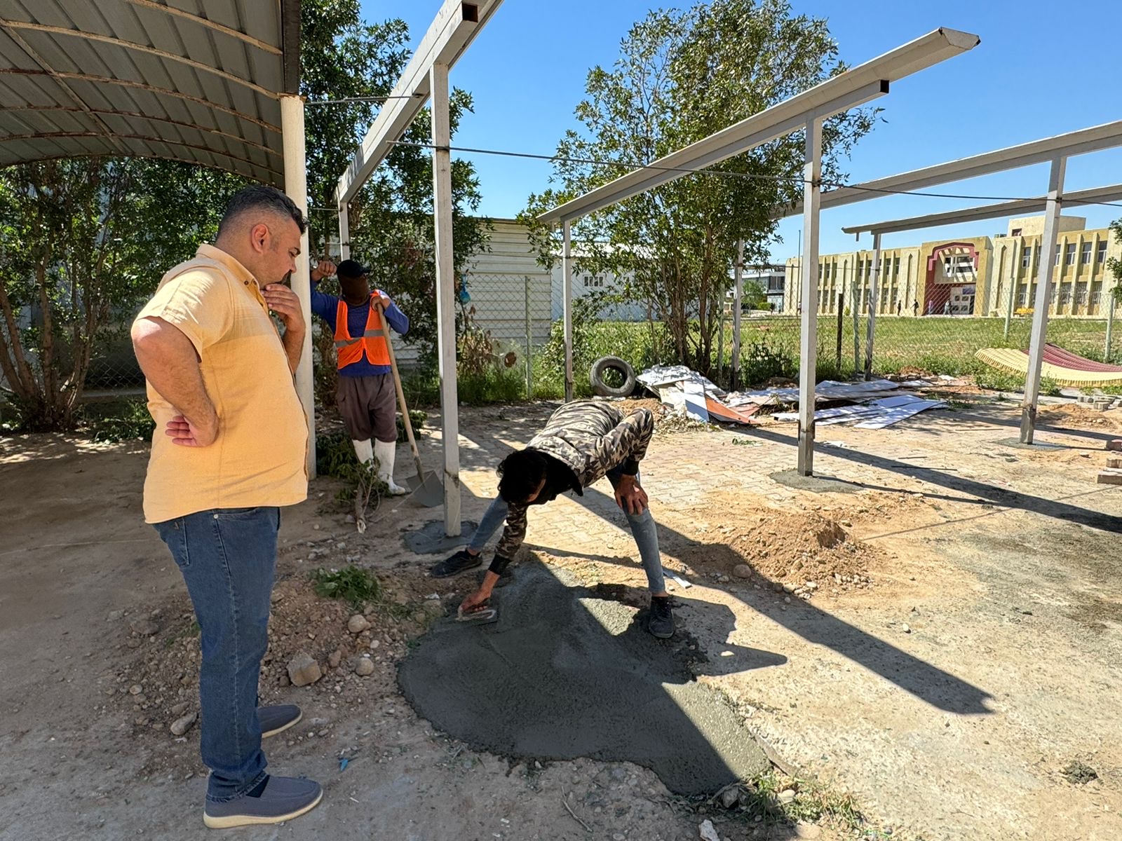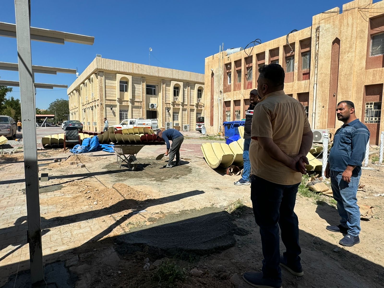تنفيذاً لتوجيهات الاستاذ الدكتور عبد الخالق علوان محيميد عميد كلية العلوم وضمن سلسلة الجولات اليومية اشرف الدكتور علي حسين الطيف معاون العميد للشؤون الادارية على نصب وتهئية سقائف وقوف عجلات الموظفين الخاصة بالكلية واعمال ترصيف الطريق مؤگداً على الاسراع بأنجاز العمل بأسرع وقت ممكن.
