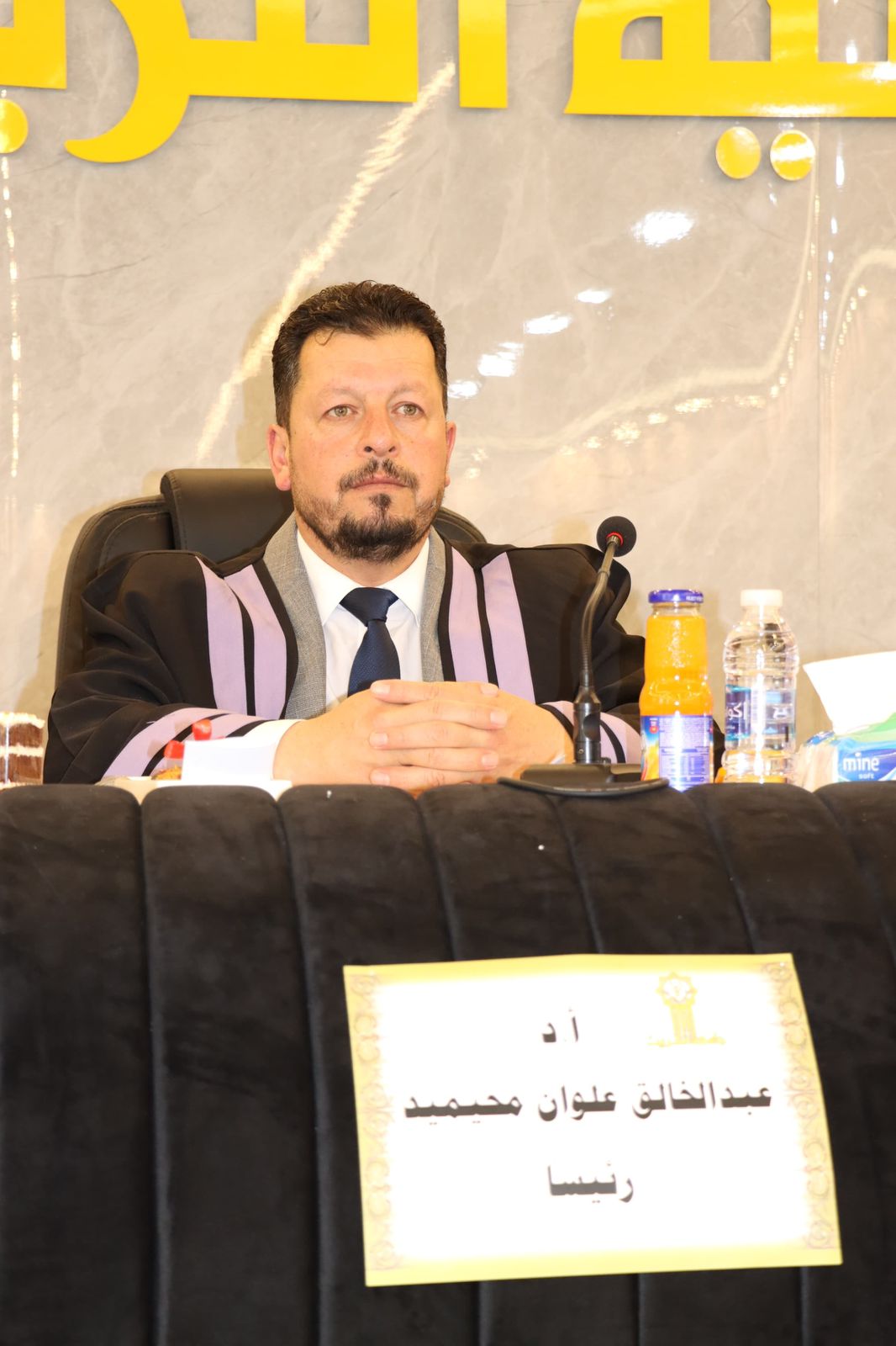 ترأس الاستاذ الدكتور عبد الخالق علوان محيميد صباح يوم الاربعاء الموافق 15/5/2024 اطروحة الدكتوراه (التشخيص الجزيئي لطفيلي الايميريا في الاغنام في محافظة صلاح الدين مع دراسة علاجية للطفيلي بأستخدام مستخلص نباتي الشيح وحشيشة الليمون)) الموسومة للطالبة (( حنان اضحوي عبد الله )) قسم علوم الحياة في كلية التربية بنات وقد بارك السيد عميد كلية العلوم الجهود المبذولة في هذه الاطروحة من قبل الطالبة والاساتذة المشرفين واثنى على دقة الملاحظات العلمية وصوابها والتي تعكس المستوى العلمي الرصين للجامعة.