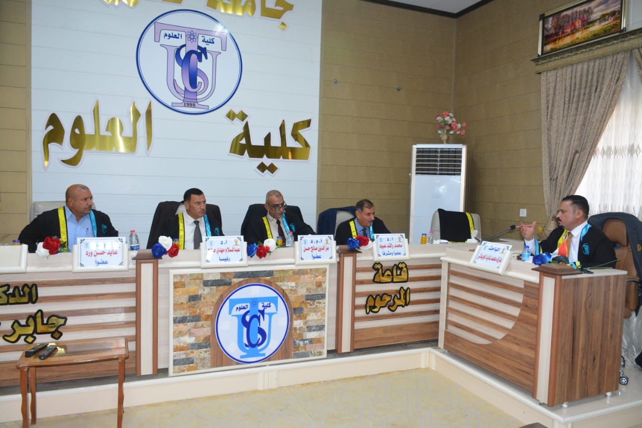 نوقشت في كلية العلوم قسم الجيولوجي رسالة الماجستير للطالب (عارف محمد عايد الجوعاني) الموسومة