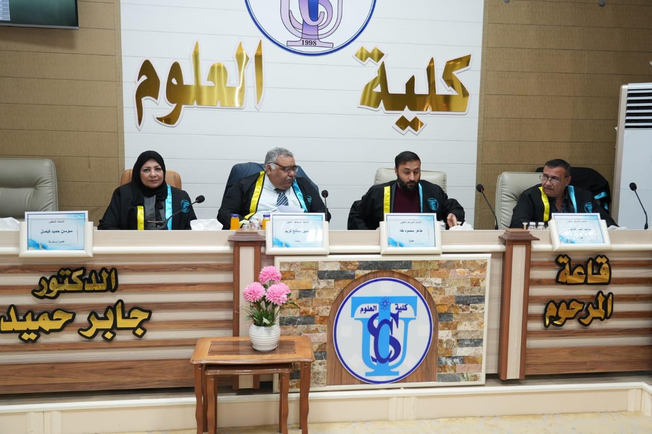 نوقشت في كلية العلوم قسم علوم الارض التطبيقية رسالة الماجستير (دراسة خصائص الأطيان في مواقع مختارة في الصحراء الغربية وبيان صلاحيتها لصناعة الاسمنت) للباحث (علي عطاالله مشوح)