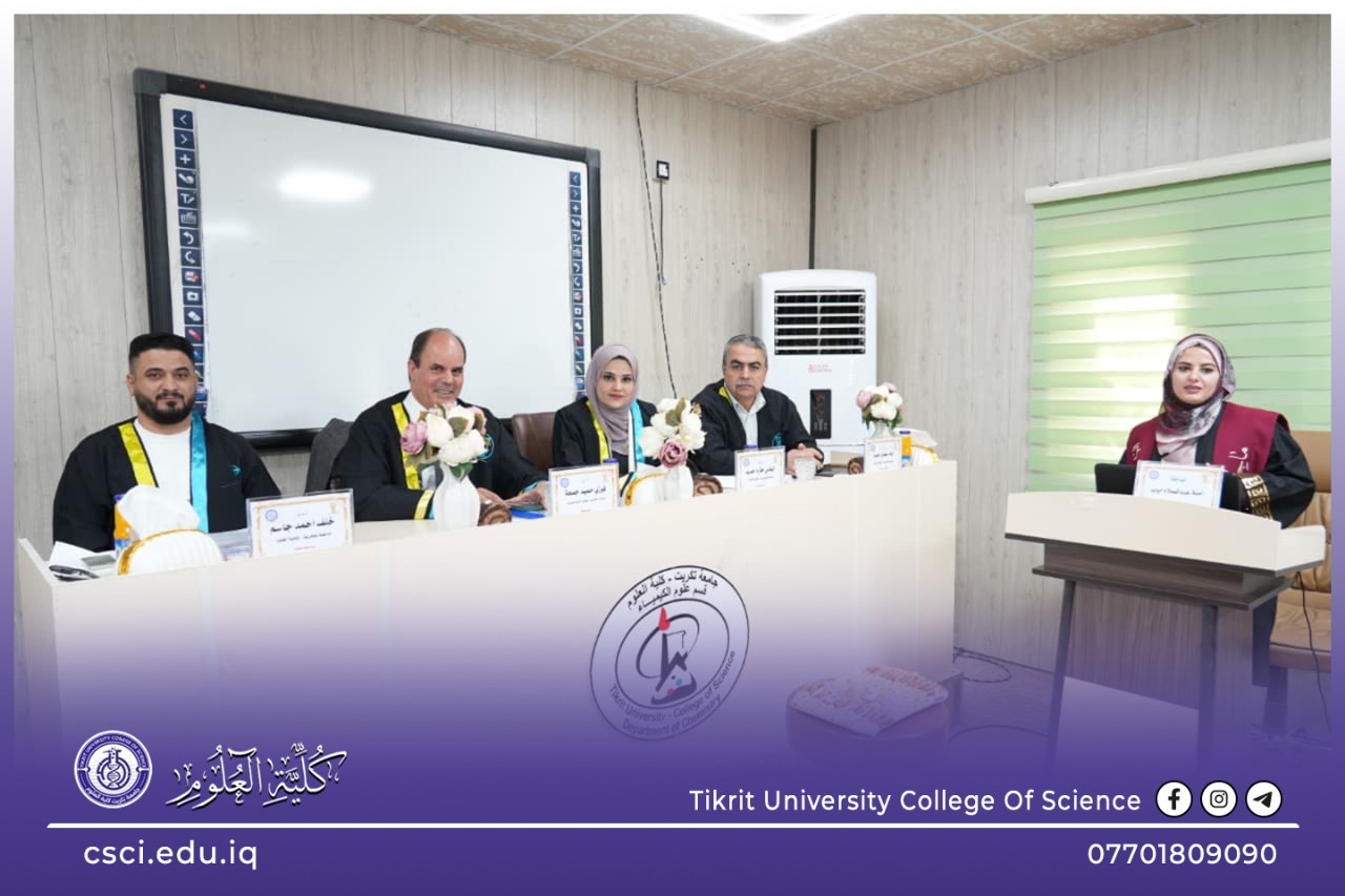 نوقشت في كلية العلوم قسم الكيمياء رسالة الماجستير (تحضير بعض المشتقات الميثيمازول ودراسة تأثيرها التثبيطي على انزيم البيروكسيديز المنقى جزئياً من أمصال مرضى فرط نشاط الغدة الدرقية) للباحثة (امنه عبد السلام ايوب)