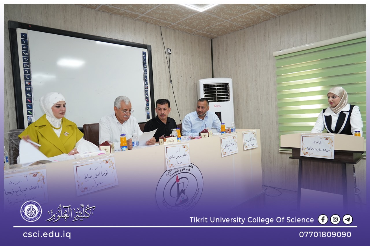 نوقشت في كلية العلوم قسم الكيمياء رسالة الماجستير (تحضير وتشخيص وتقييم الفعالية الحيوية لعدد من معقدات الزنك (II) الحاوية على مزيج من الليكنداتالأسيسلفام والأمينات أو الثايونات أو الفوسفينات) للباحثة (مروة رؤوف داود)
