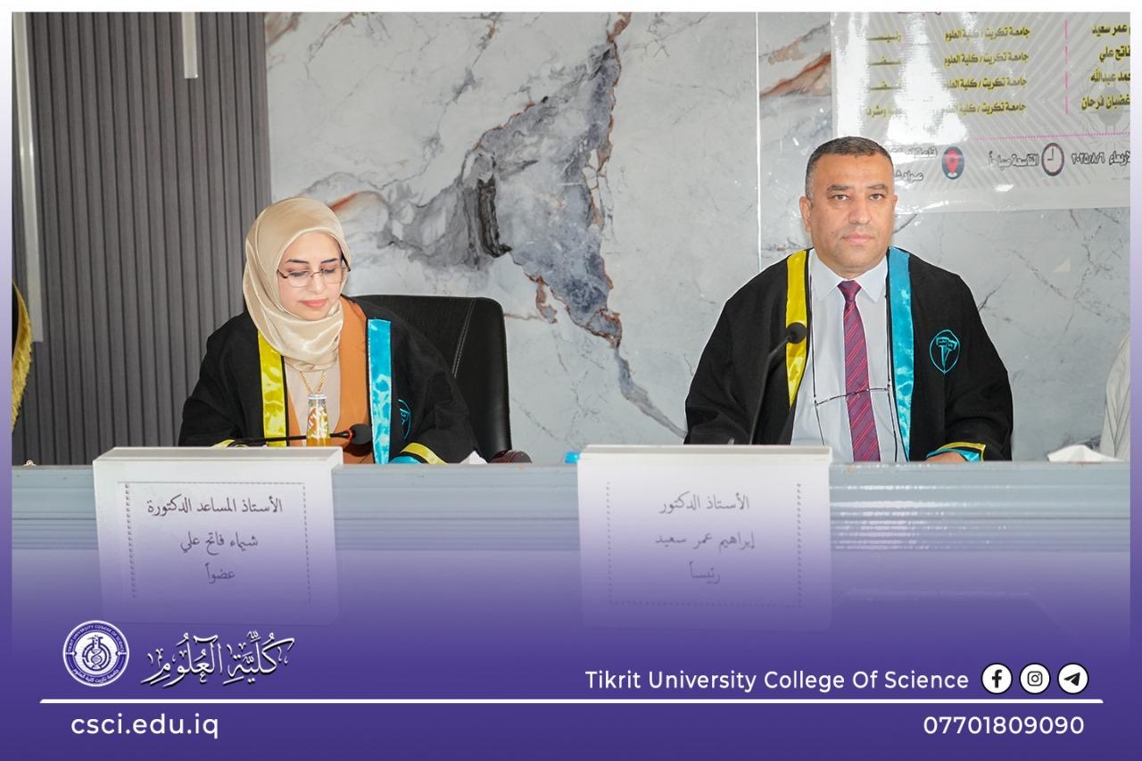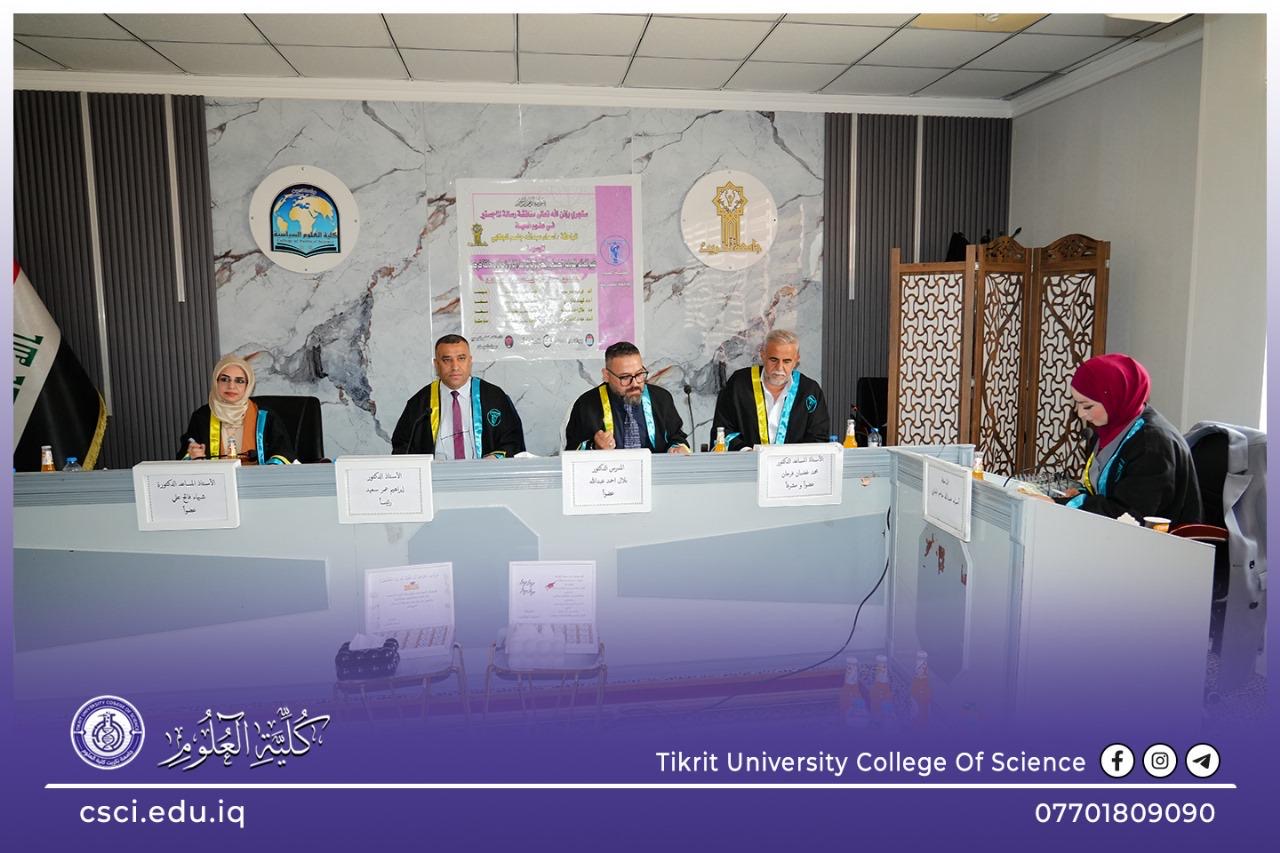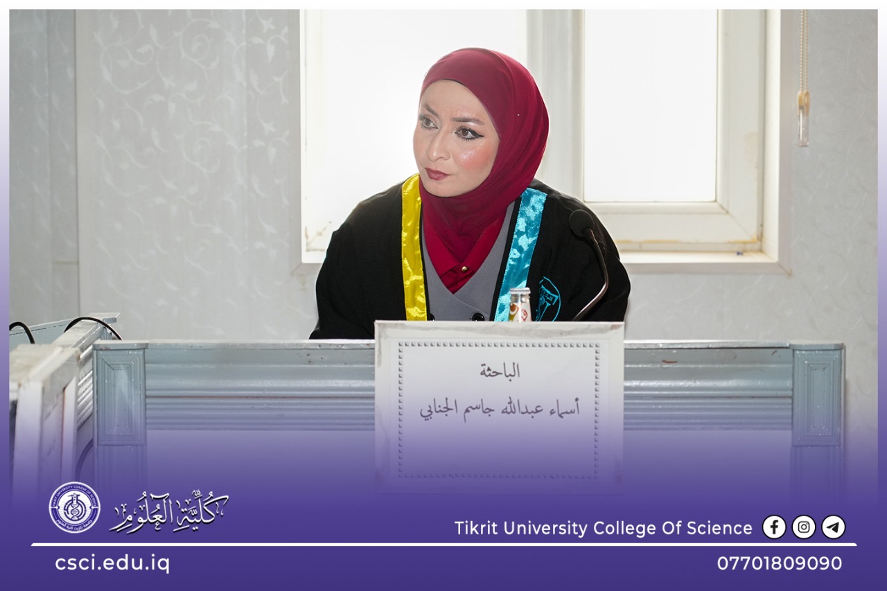 نوقشت في كلية العلوم قسم علوم الحياة رسالة الماجستير (تقييم الخصائص الفيزيائية والكيميائية والبكتريولوجية لمياه بعض الابار في ناحية الزاب – محافظة كركوك) للباحثة (اسماء عبد الله جاسم)