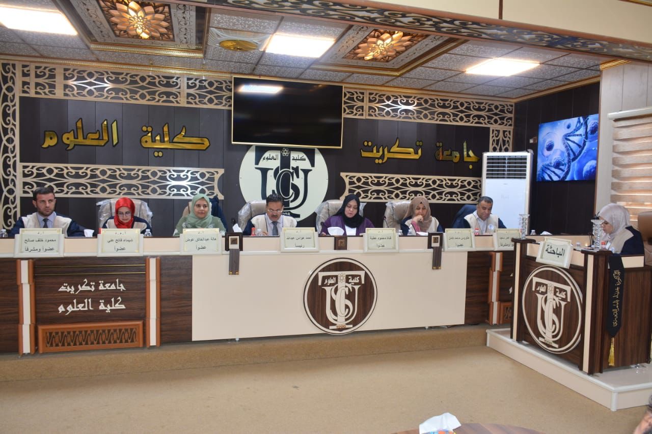 في اطار النهج المستمر لرئيس الجامعة في الحضور الشخصي والفاعل للمناقشات العلمية لإطاريح الدكتوراه ورسائل الماجستير حضر الاستاذ الدكتور وعد محمود رؤوف رئيس جامعة تكريت مناقشة اطروحة دكتوراه ( تقييم الواقع البيئي لبعض مستشفيات صلاح الدين وتقدير الفعالية التثبيطية للمستخلصات النباتية على انواع البكتريا المعزولة من المستشفى ) الموسومة للباحثة (خنساء باسل فاضل) قسم علوم الحياة