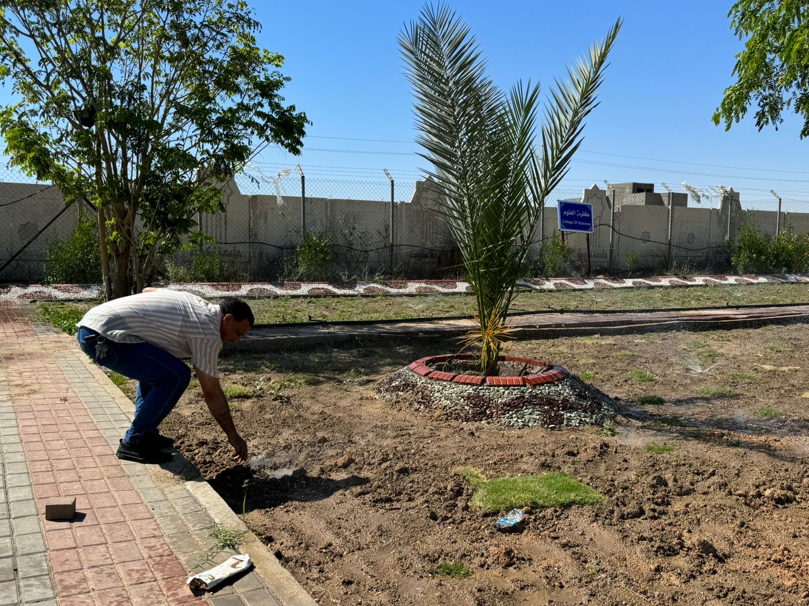 اجرى الاستاذ المساعد الدكتور علي حسين الطيف معاون عميد كلية العلوم للشؤون الادارية جولة ميدانية لمتابعة سير العملية الخدمية بتنظيف وسقي الحدائق الخارجية للكلية التي باشرت بها الكوادر الخدمية يوم صباح يوم الخميس الموافق 9/5/2024