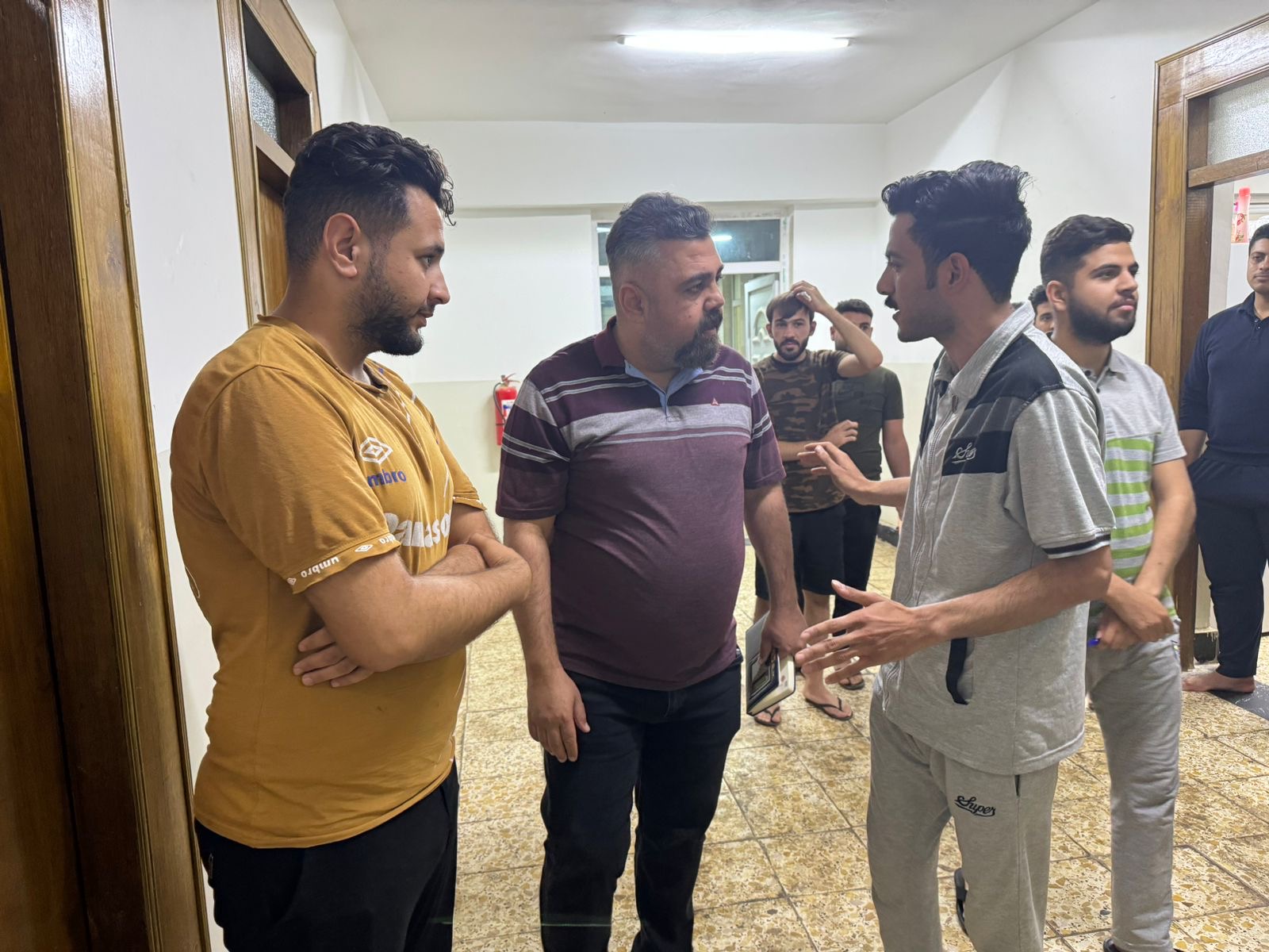 زار كل من أ.م.د.علي حسين الطيف والاستاذ معاون العميد للشؤون الادارية و أ.م.د.فراس فارس رجا معاون العميد للشؤون العلمية و أ.م.د.ايمن عدوان عبد رئيس قسم علوم الحياة في ساعة متأخرة الى الأقسام الداخلية لمجمع الاقسام النموذجي الجديد للاطلاع على الواقع السكني والخدمي والمعيشي لطلبة كلية العلوم الساكنين في الأقسام الداخلية وكيفية ترجمة هذا الواقع إلى أفعال تخدم الطلبة من قبل القائمين عليها.