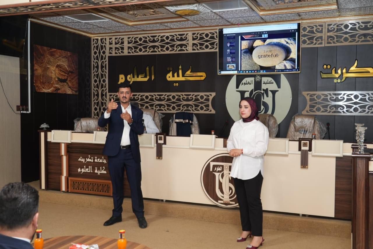استقبل الاستاذ الدكتور عبد الخالق علوان محيميد عميد كلية العلوم الاستاذ الدكتور وعد محمود رؤوف رئيس جامعة تكريت وحضرو كل الجانبين ورشة عمل بعنوان (كيفية الوصول الى سوق العمل عن طريق مواقع التواصل الاجتماعي) عقدتها كلية العلوم بالتعاون مع شعبة التأهيل والتوظيف والمتابعة في رئاسة الجامعة استهدفت طلبة المرحلة الرابعة والخريجين القى محاورها السيد اسامة محمد عبدالله من رئاسة الجامعة والمدربة المعتمدة السيدة رغد أحمد السامرائي