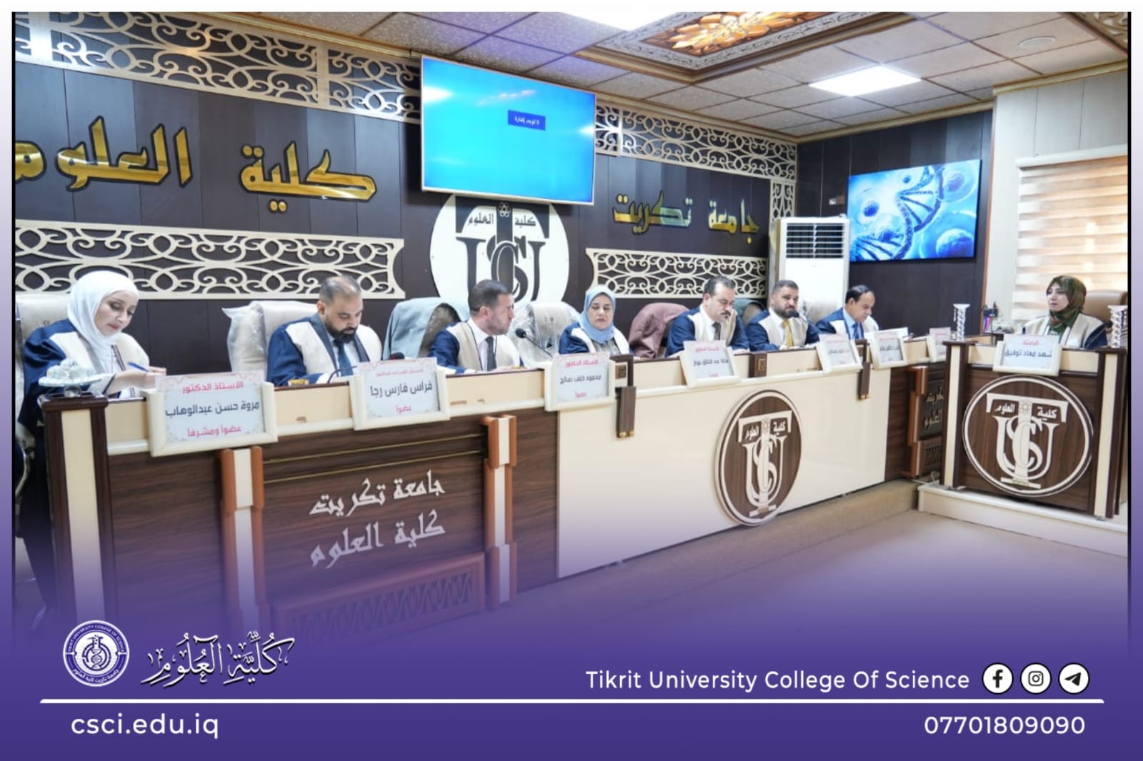 نوقشت في كلية العلوم قسم علوم الحياة اطروحة الدكتوراه (التعرف الجزيئي على العقدية القيحية وعلاقتها بالاستجابة المناعية لدى الأطفال المصابين بعدوى البلعوم) للباحثة (شهد معاد توفيق)
