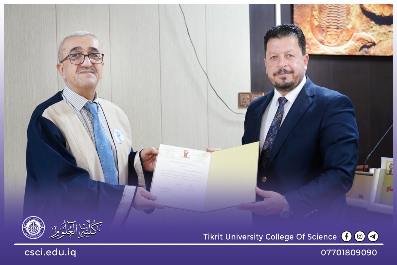 نوقشت في كلية العلوم قسم الكيمياء اطروحة دكتوراه (التخثر الكهربائي- الامتزاز تقنية فعالة لتقدير وازالة الفينول الرصاص والكادميوم من مياه الصرف الصحي النفط) للباحث (زياد خلف عبد الله)