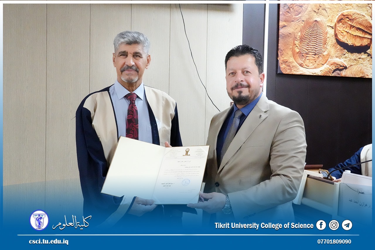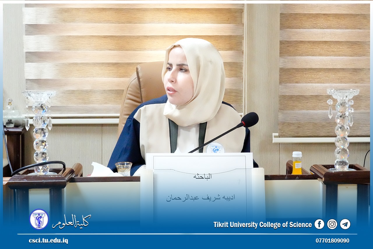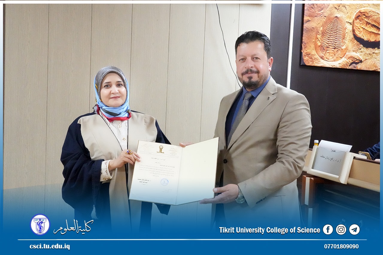 نوقشت في كلية العلوم قسم علوم الحياة اطروحة الدكتوراه (انتاج الجسيمات النانوية من المستخلص المائي لبعض الفطريات الكبيرة العراقية وتقييم فاعليتها البايولوجية) للباحثة (اديبة شريف عبد الرحمان)