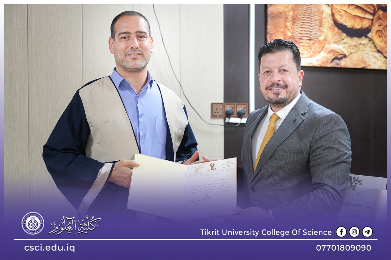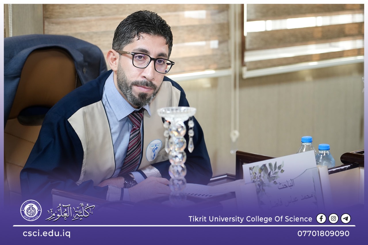 نوقشت في كلية العلوم قسم الكيمياء اطروحة الدكتوراه (تحضير وتصنيف نانو مركبات جديدة مشتقة من (g-C3N4 /NiFe2O4/K2Fe4O7) واستخدامها في تنقية المياه الملوثة بصبغة الميثيلين الأزرق وبكتيريا الإشريكية القولونية) للباحث (محمد عباس فاضل)