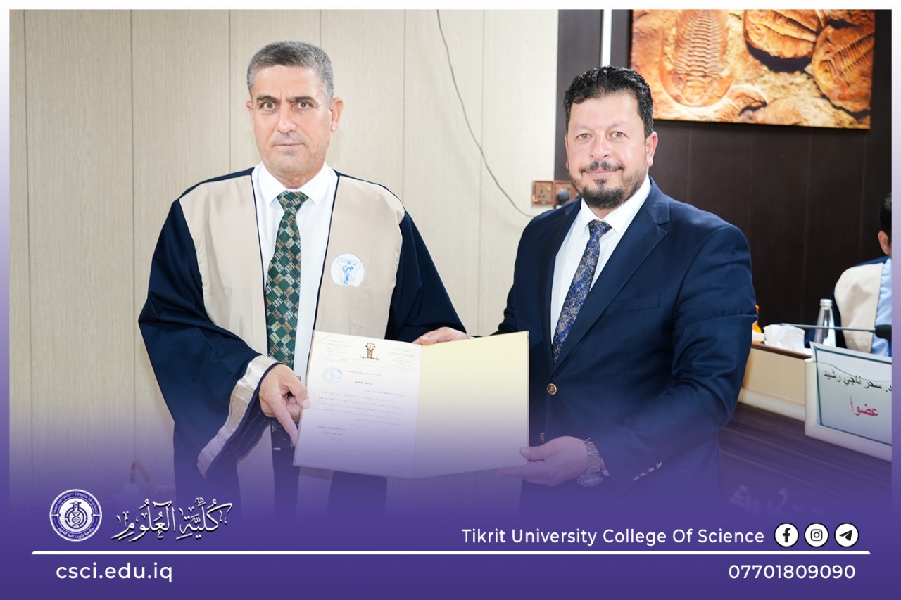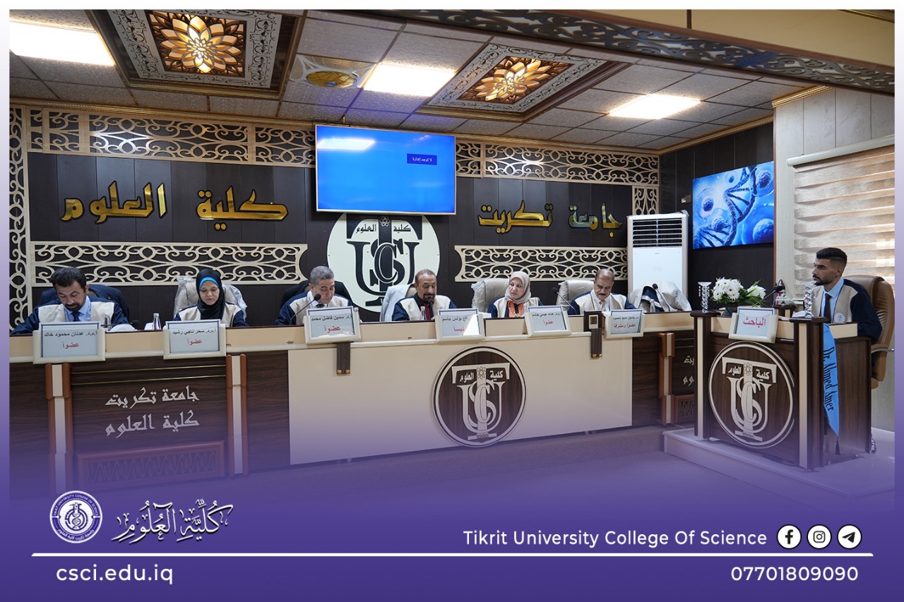 نوقشت في كلية العلوم قسم الفيزياء اطروحة الدكتوراه (تصميم وتصنيع منظومة شمسية لتحلية المياه ودراسة خصائصها) للباحث (احمد عامر رجب)