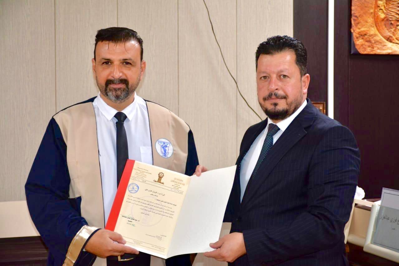 نوقشت في جامعة تكريت كلية العلوم رسالة طالب الدكتوراه (احمد عبد الكريم احمد) الموسومة (تصنيع ودراسة خصائص المفرق الهجين cus\n-si و cus\Psi واستخدامه في تطبيقات الكواشف الضوئية)