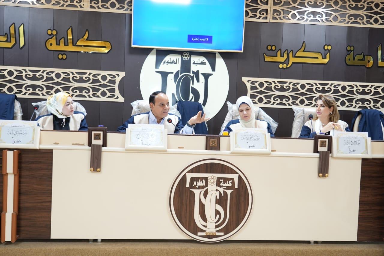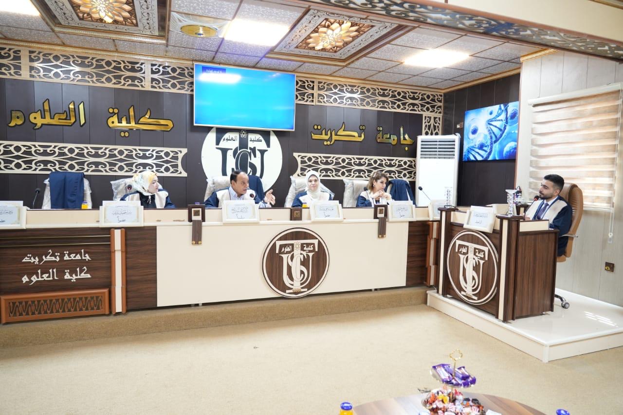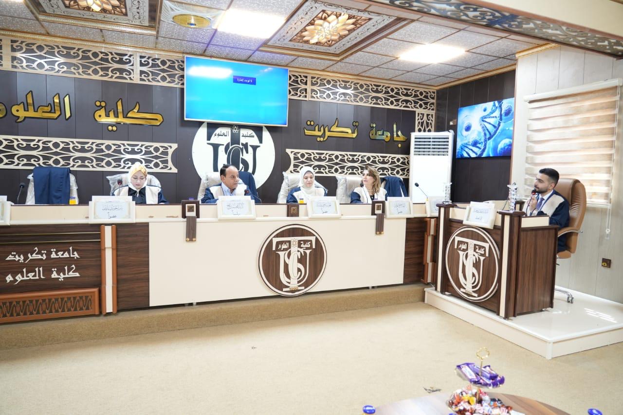بحضور الاستاذ الدكتور وعد محمود رؤوف رئيس جامعة تكريت نوقشت في كلية العلوم قسم علوم الحياة اطروحة دكتوراه تناقش (تصنيع جسيمات نانوية بالطريقة الخضراء وتوصيفها وتقييم فعاليتها التثبيطية لبعض الخطوط الخلوية وبكتريا Pseudomonas aeruginosa المعزولة من الجروح والحروق) للباحث (ارشد مهدي حمد)