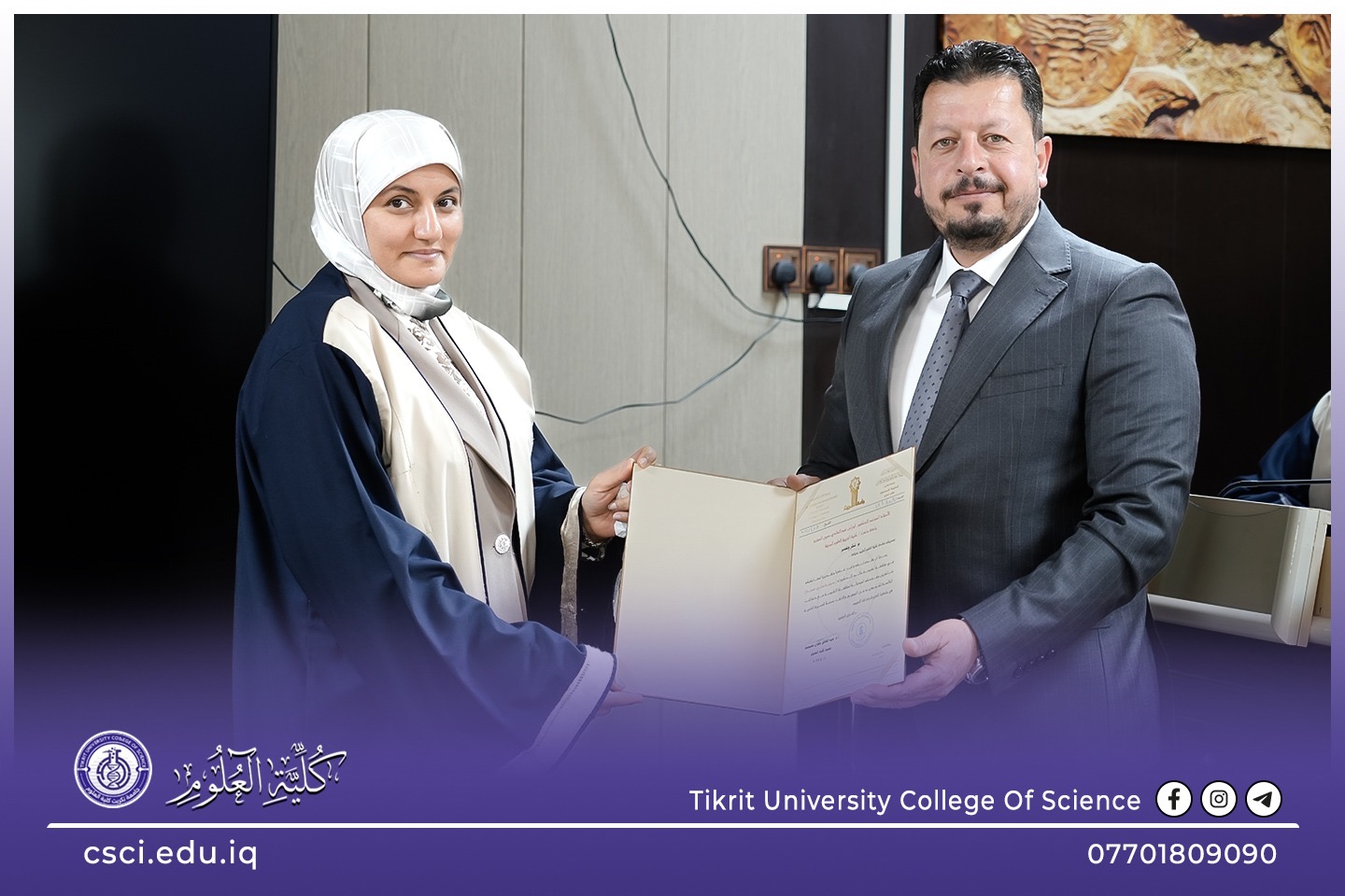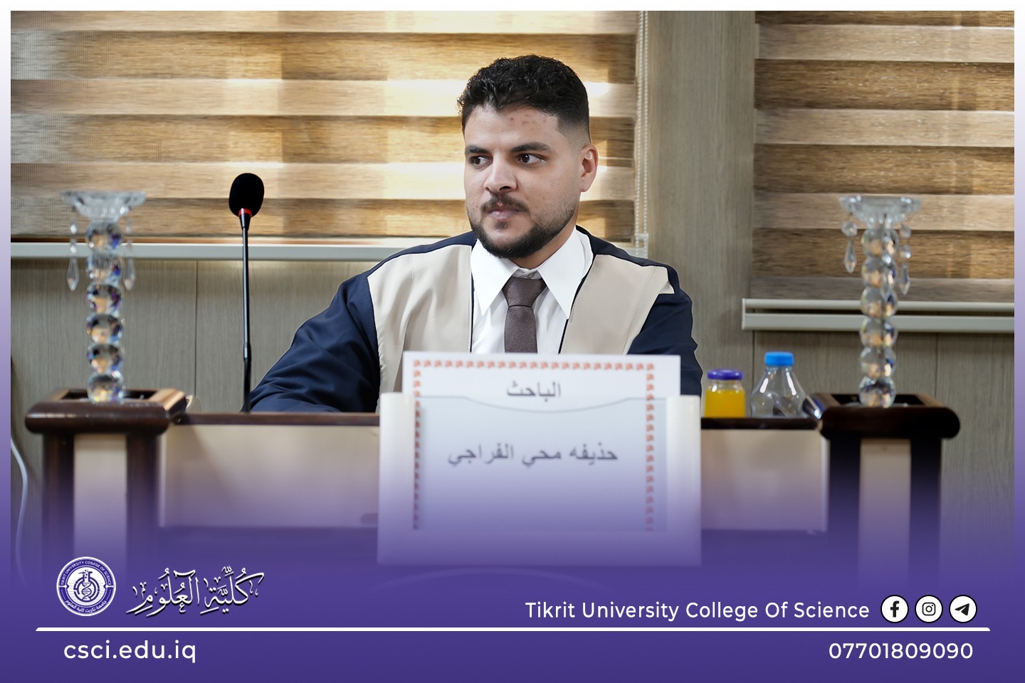أعلن قسم الفيزياء في كلية العلوم بجامعة تكريت عن مناقشة أطروحة دكتوراه نوعية للباحث حذيفه محي محمد، والتي ركزت على تطوير مواد نانوية متقدمة باستخدام تقنيات الليزر الحديثة لتعزيز الفعالية البيولوجية ضد البكتيريا المرضية.