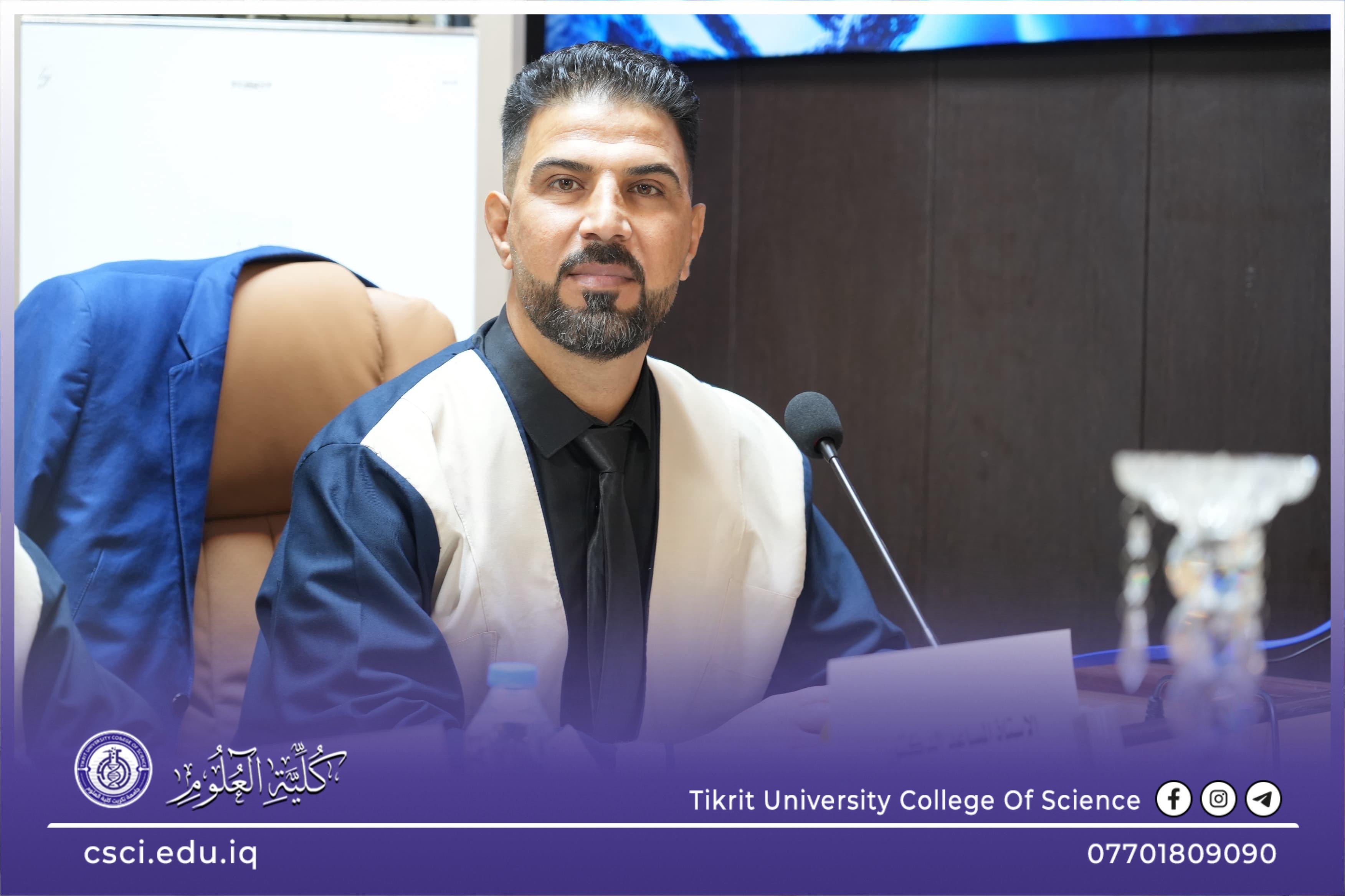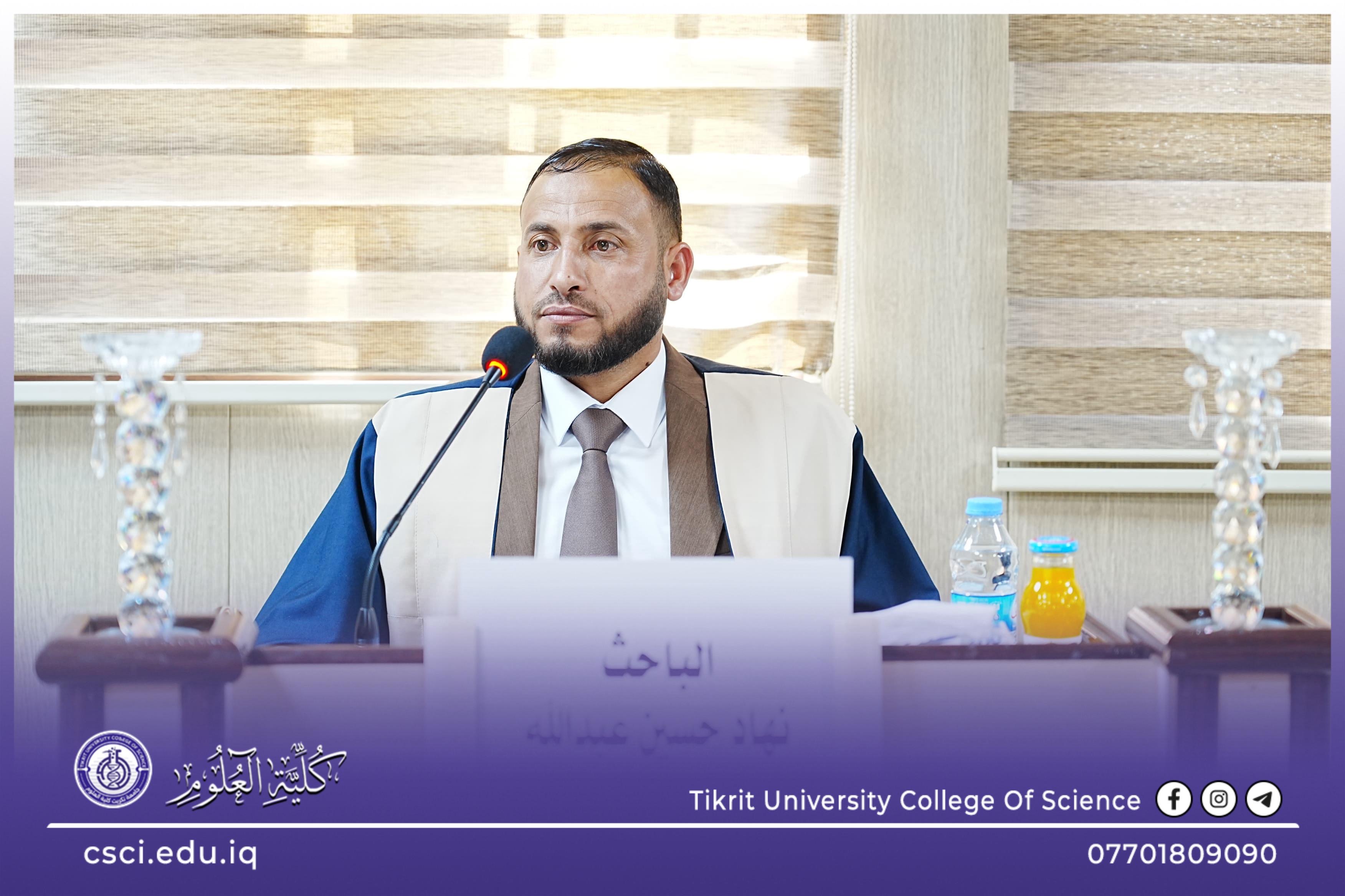 نجح الباحث "نهاد حسين عبدالله العوين"، الطالب في قسم الكيمياء بكلية العلوم بجامعة تكريت، في نيل درجة الدكتوراه بتقدير عالٍ عن أطروحته الموسومة: "تحضير وتشخيص مركبات قرصية بلورية سائلة جديدة، دراسة خصائص النانو، الالتحام الجزيئي وتطبيق الفعالية البيولوجية لها