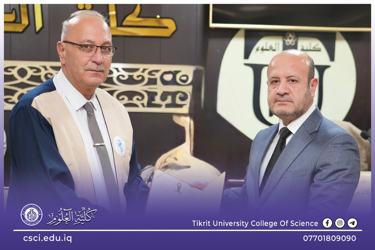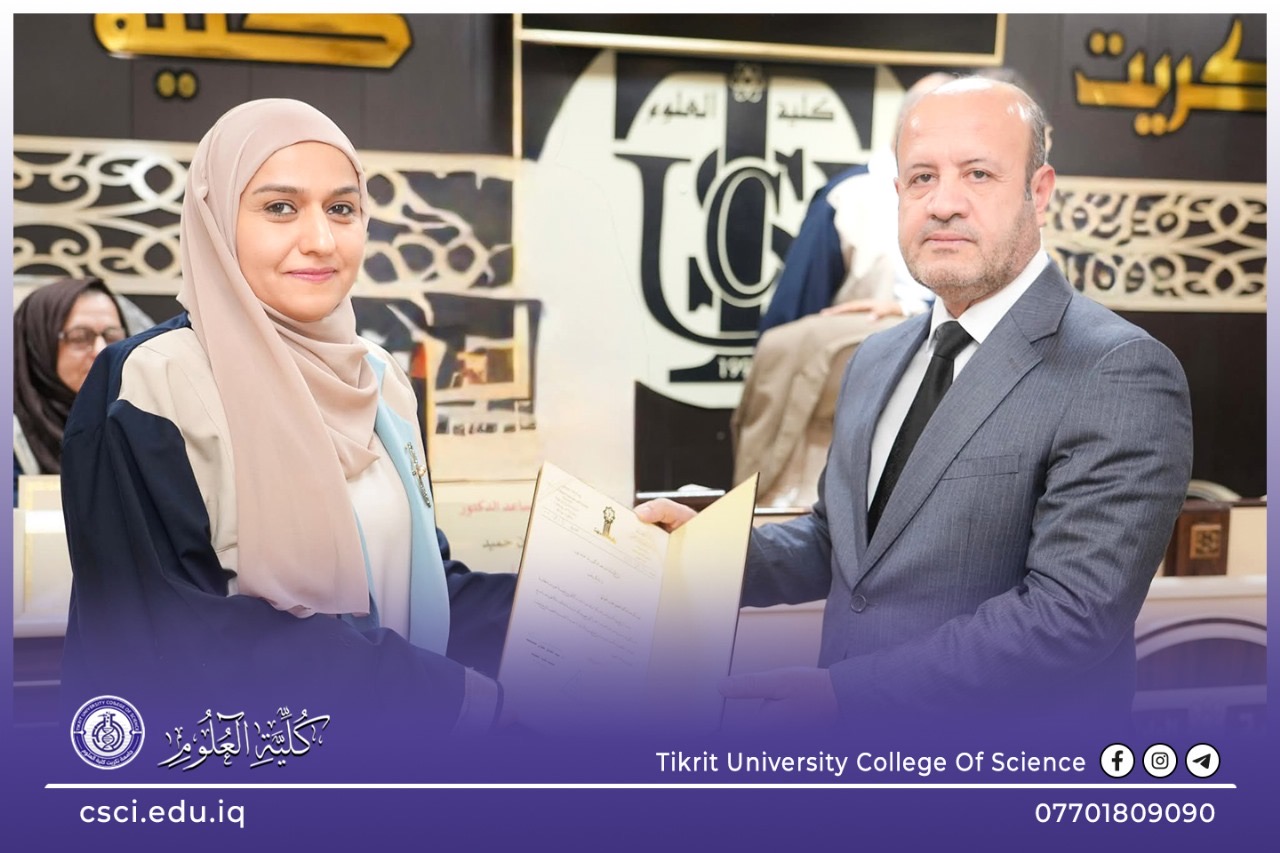 بحضور الاستاذ الدكتور وعد محمود رؤوف رئيس جامعة تكريت نوقشت في كلية العلوم قسم علوم الحياة اطروحة الدكتوراه (دراسـة تشريحية و نسـجية كيميائية مقارنة للجهاز التناسلي الانثوي للدجاج البياض مع دجاج اللحم وبأعمار مختلفة) للباحثة (مروة عادل حميد)