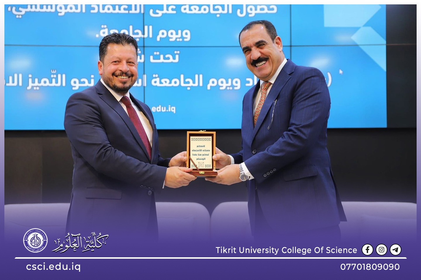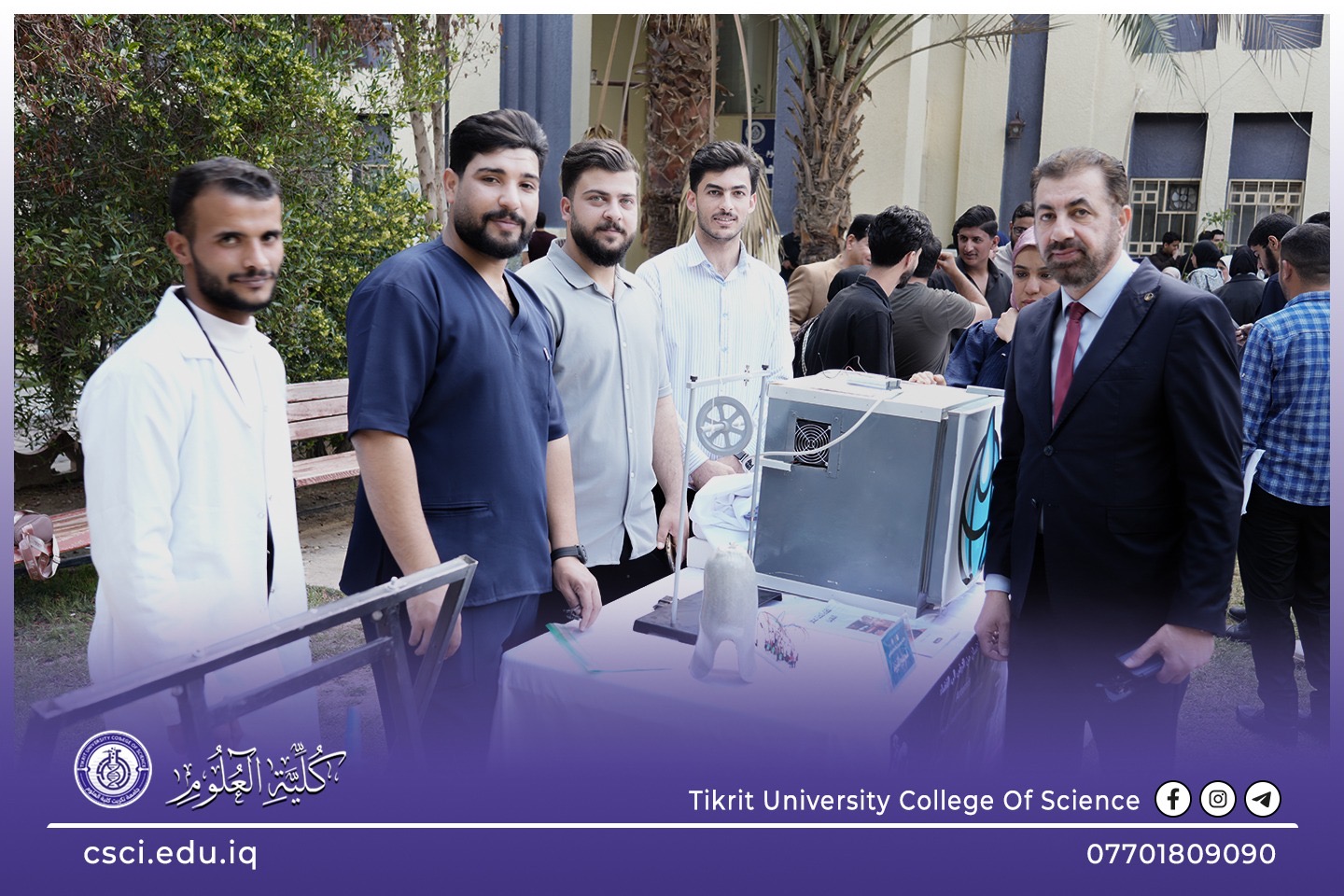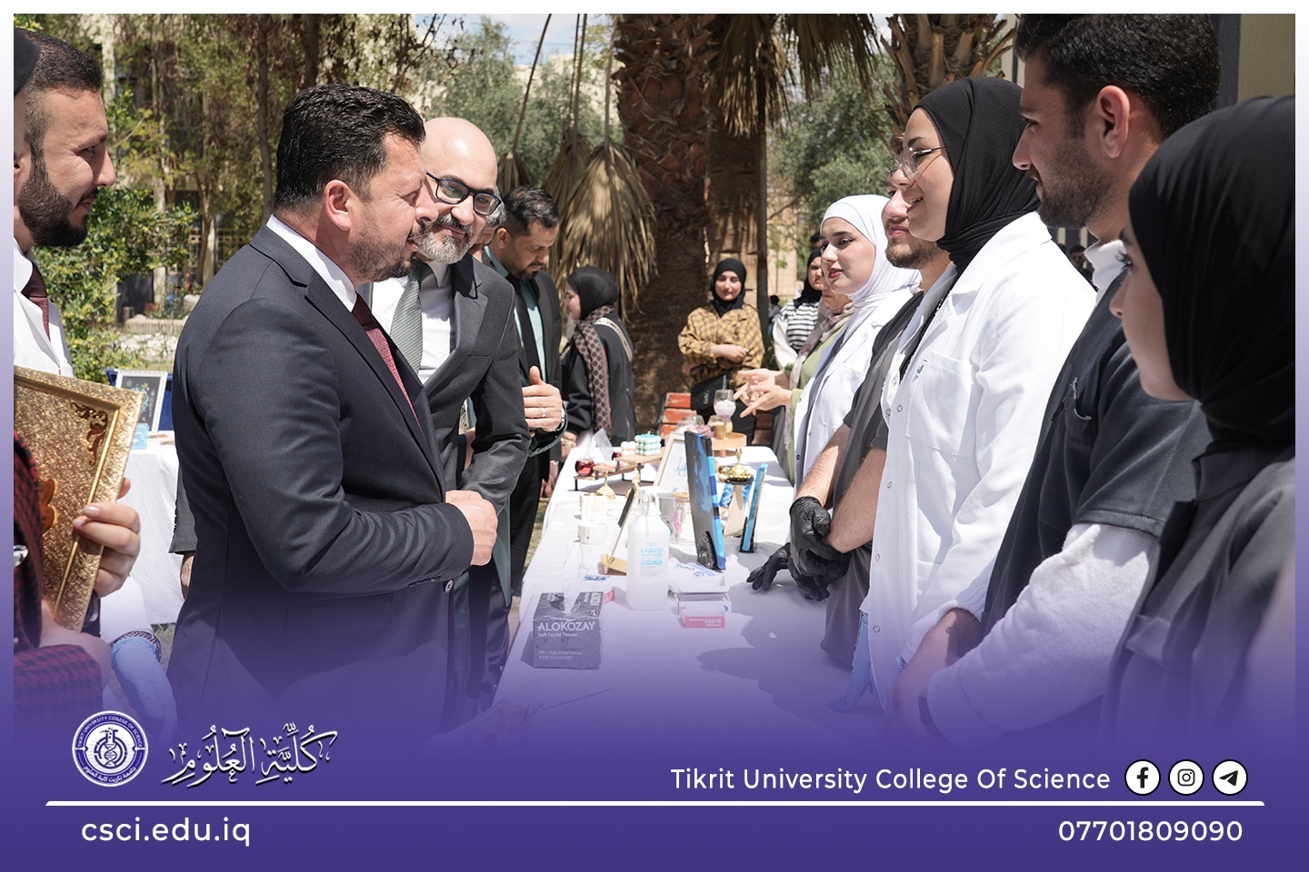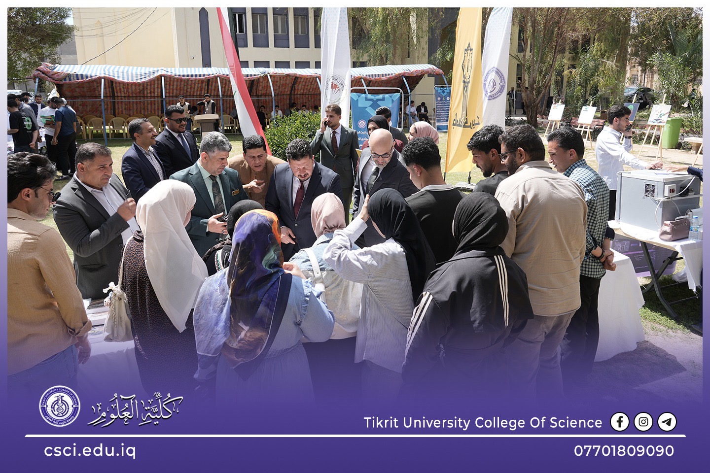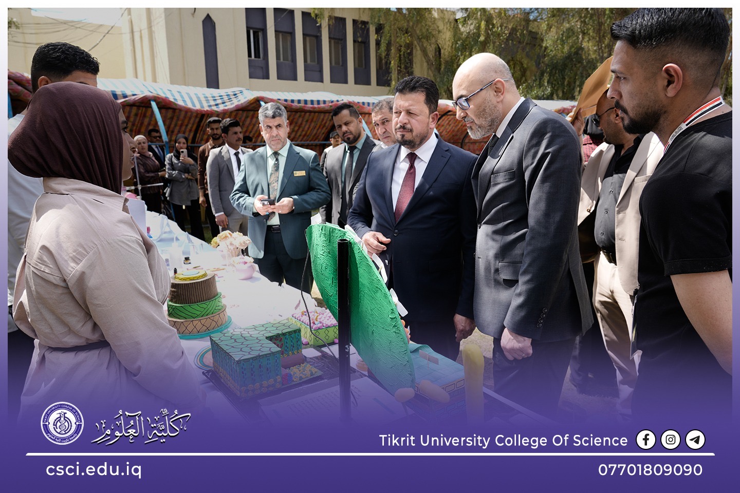 بحضور الأستاذ الدكتور عدنان ابراهيم عبد الجميلي، وكيل وزارة التعليم العالي والبحث العلمي للشؤون الإدارية، وبرعاية السيد رئيس جامعة تكريت الأستاذ الدكتور وعد محمود روؤف، وبإشراف ومتابعة الاستاذ الدكتور عبد الخالق علوان محيميد عميد كلية العلوم نظمت الكلية معرضها العلمي الطلابي السنوي. يأتي هذا الحدث ضمن فعاليات يوم الجامعة، تزامناً مع الإنجاز التاريخي المتمثل بحصول جامعة تكريت على أربع نجوم ونيلها الاعتماد المؤسسي، وهو ما يعكس التزام الكلية بتطبيق أعلى معايير الجودة والتميز الأكاديمي.