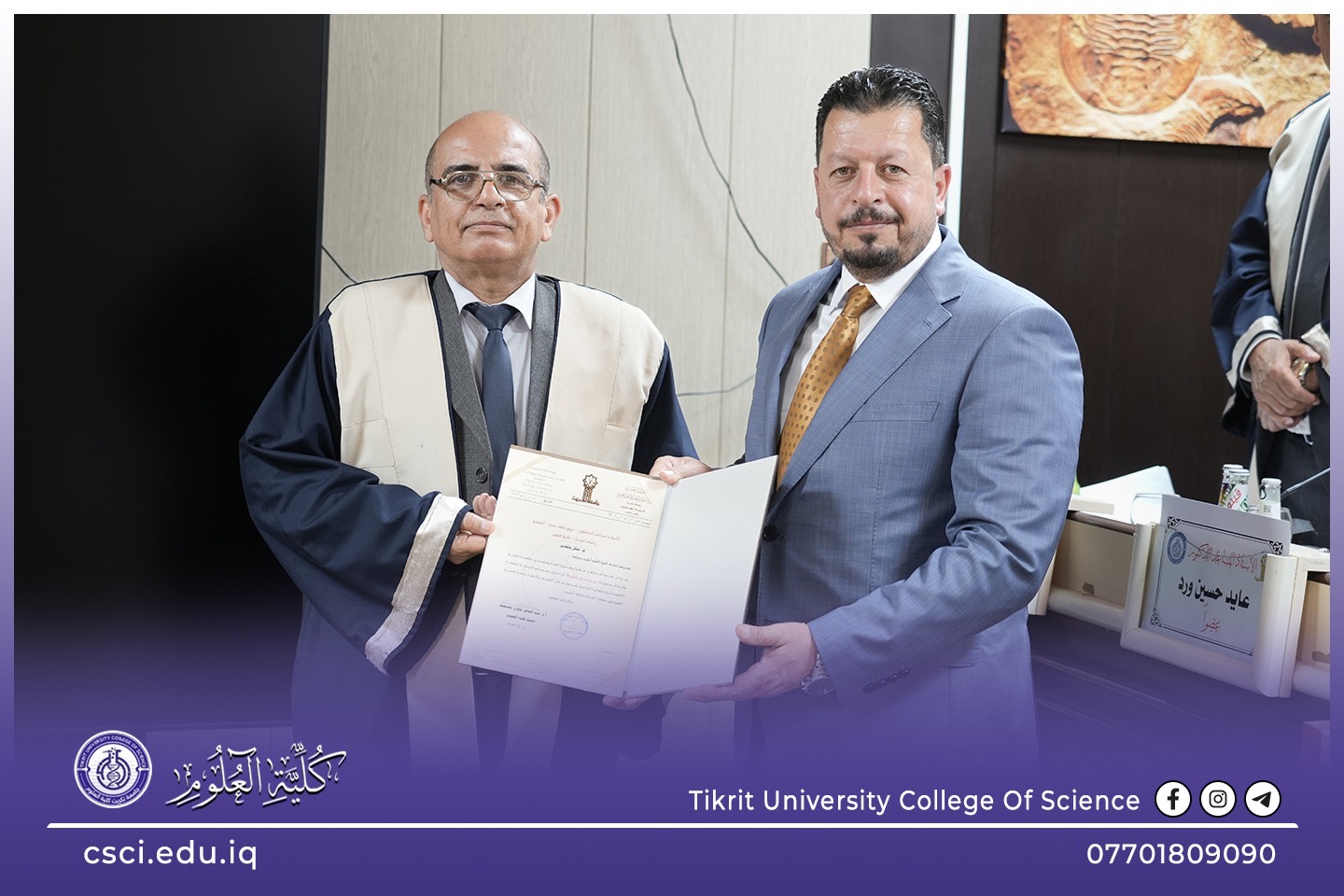 نوقشت في كلية العلوم قسم علوم الارض التطبيقية اطروحة الدكتوراه (بناء موديل تركيبي طباقي لتتابعات العصر الكريتاسي لحقل خباز النفطي/ شمال العراق) للباحثة (ريم حسين عطية)
