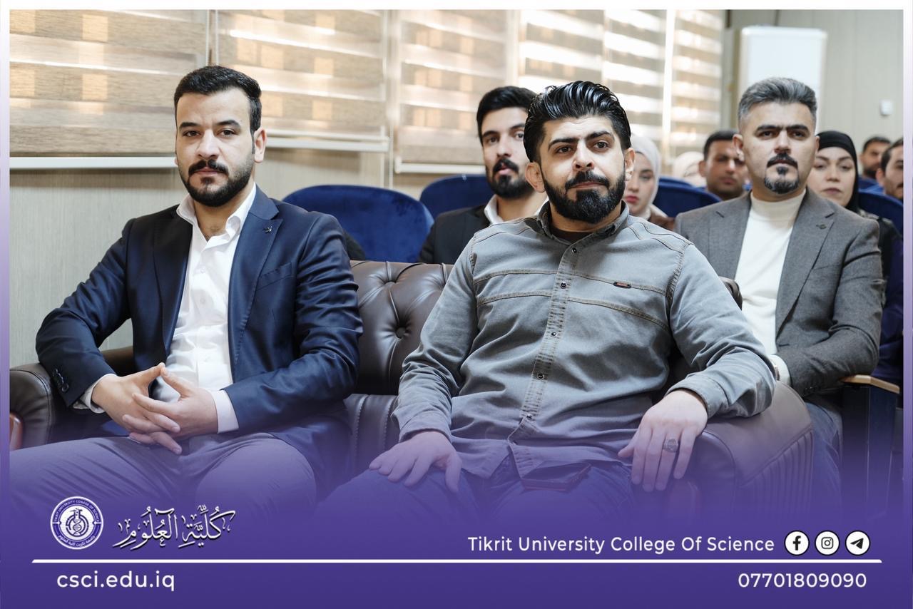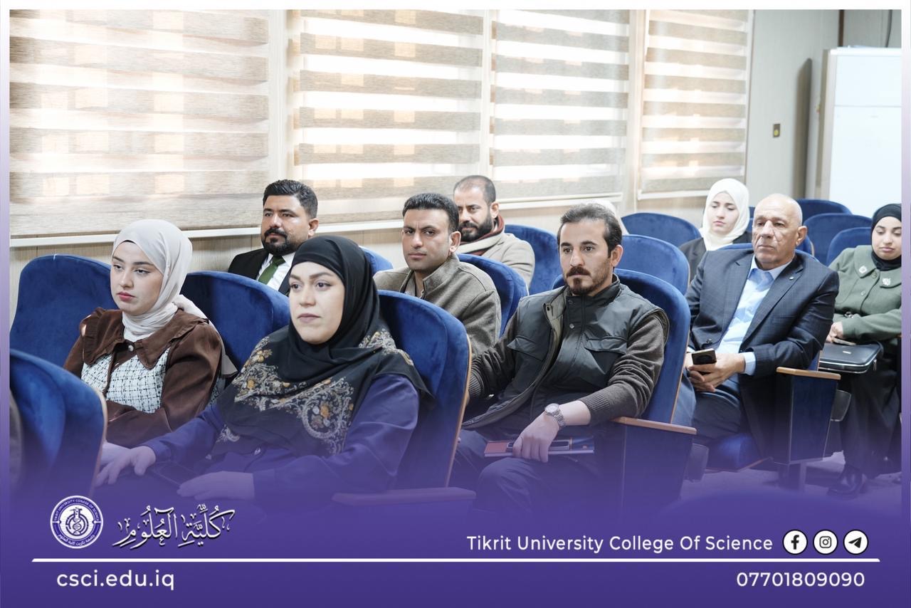 برعاية السيد رئيس جامعة تكريت، الأستاذ الدكتور وعد محمود رؤوف المحترم، وبإشراف وحضور كل من السيد عميد كلية العلوم الأستاذ الدكتور عبد الخالق علوان محيميد المحترم، والأستاذ المساعد الدكتور سياف عبد حسين المحترم أقامت كلية العلوم دورة علمية تخصصية بعنوان: