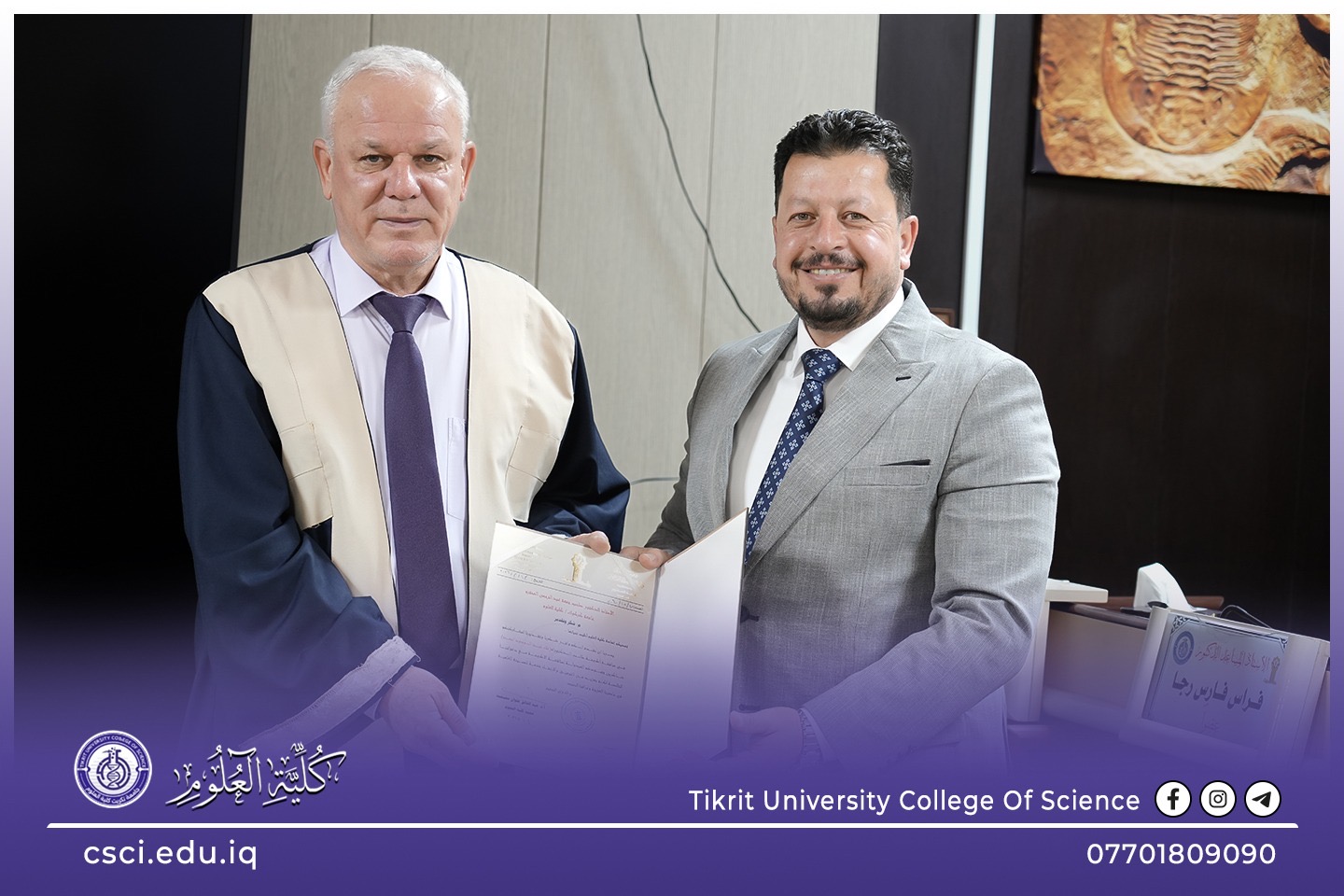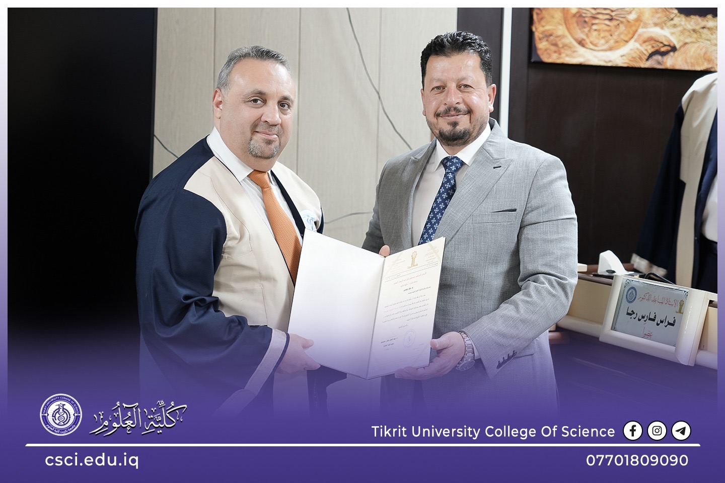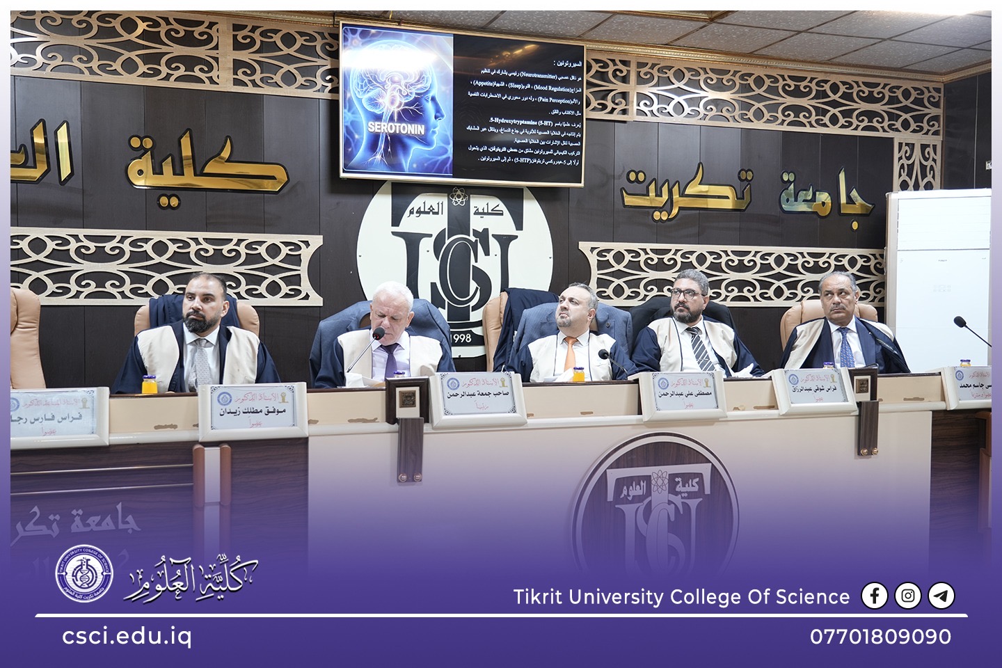 شهدت كلية العلوم بجامعة تكريت مناقشة أطروحة الدكتوراه الموسومة "علاقة هورموني السيروتونين والميلاتونين مع عدد من المتغيرات الحيوية لدى المرضى المصابين بالوسواس القهري"، والمقدمة من قبل الباحث علاء عبدالودود أحمد الزبيدي، وذلك لنيل درجة دكتوراه فلسفة في علوم الحياة.