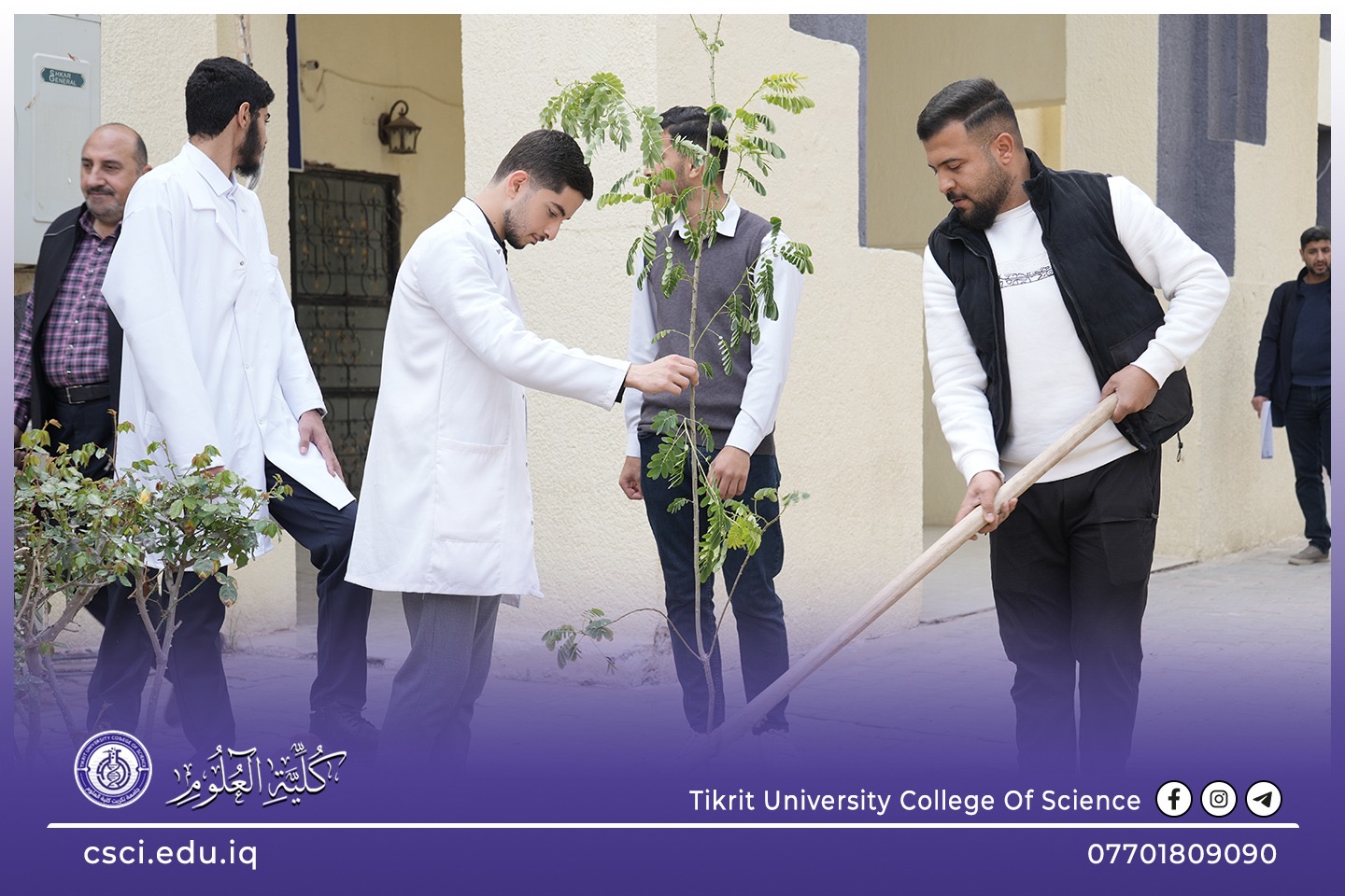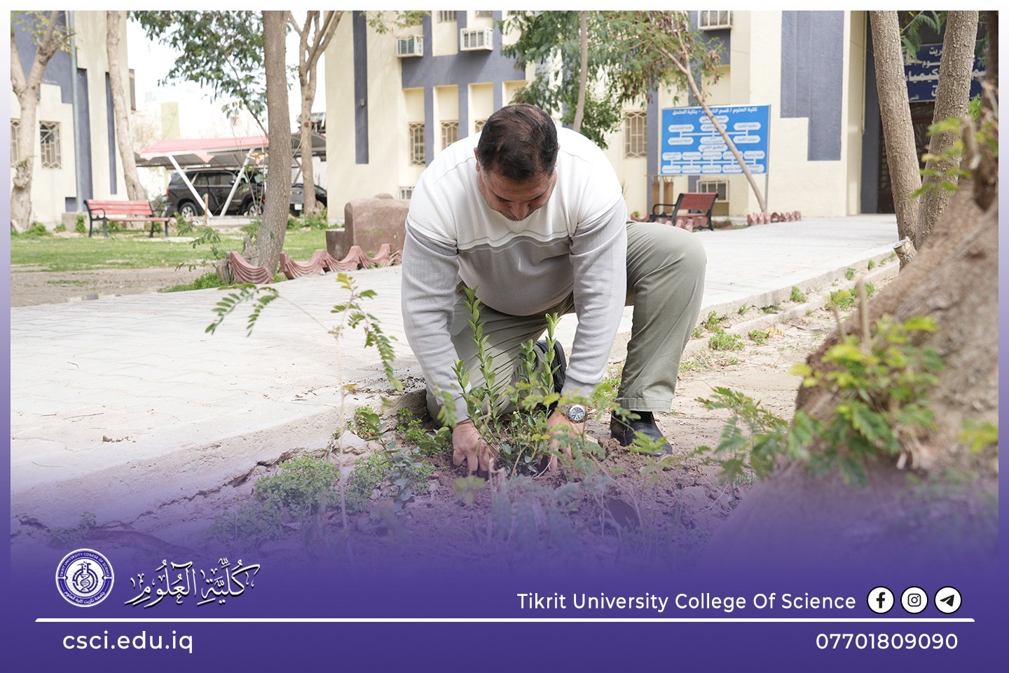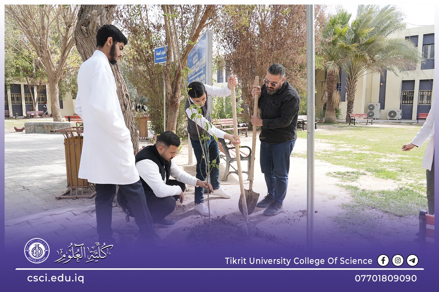 استناداً الى توجيهات رئاسة جامعة تكريت وبأشراف مباشر من الاستاذ الدكتور عبد الخالق علوان محيميد وبمناسبة يوم التشجير الوطني شرعت كلية العلوم اليوم بحملة تشجير واسعة تضمنت زراعة الشتلات والاشجار المختلفة في جميع اروقة وحدائق الكلية لاحياء هذا اليوم ضمن نهج الجامعة في زيادة المساحات الخضراء و الاهتمام بالبيئة وتقليل آثار التصحر.
