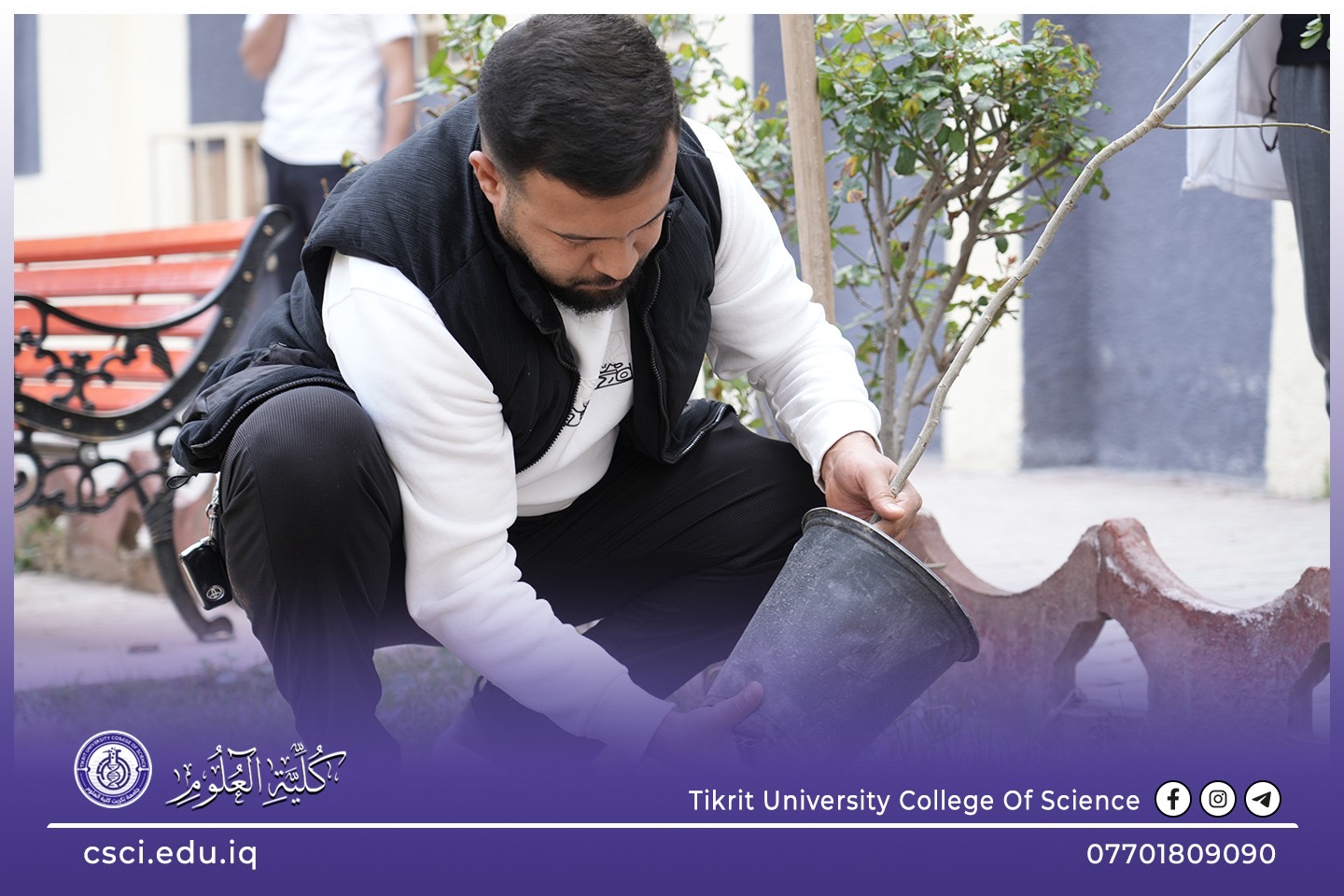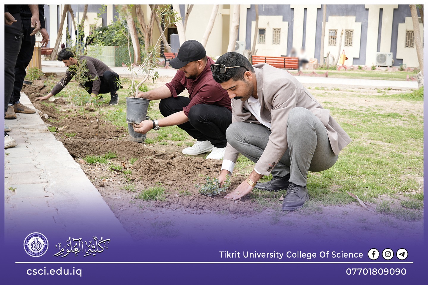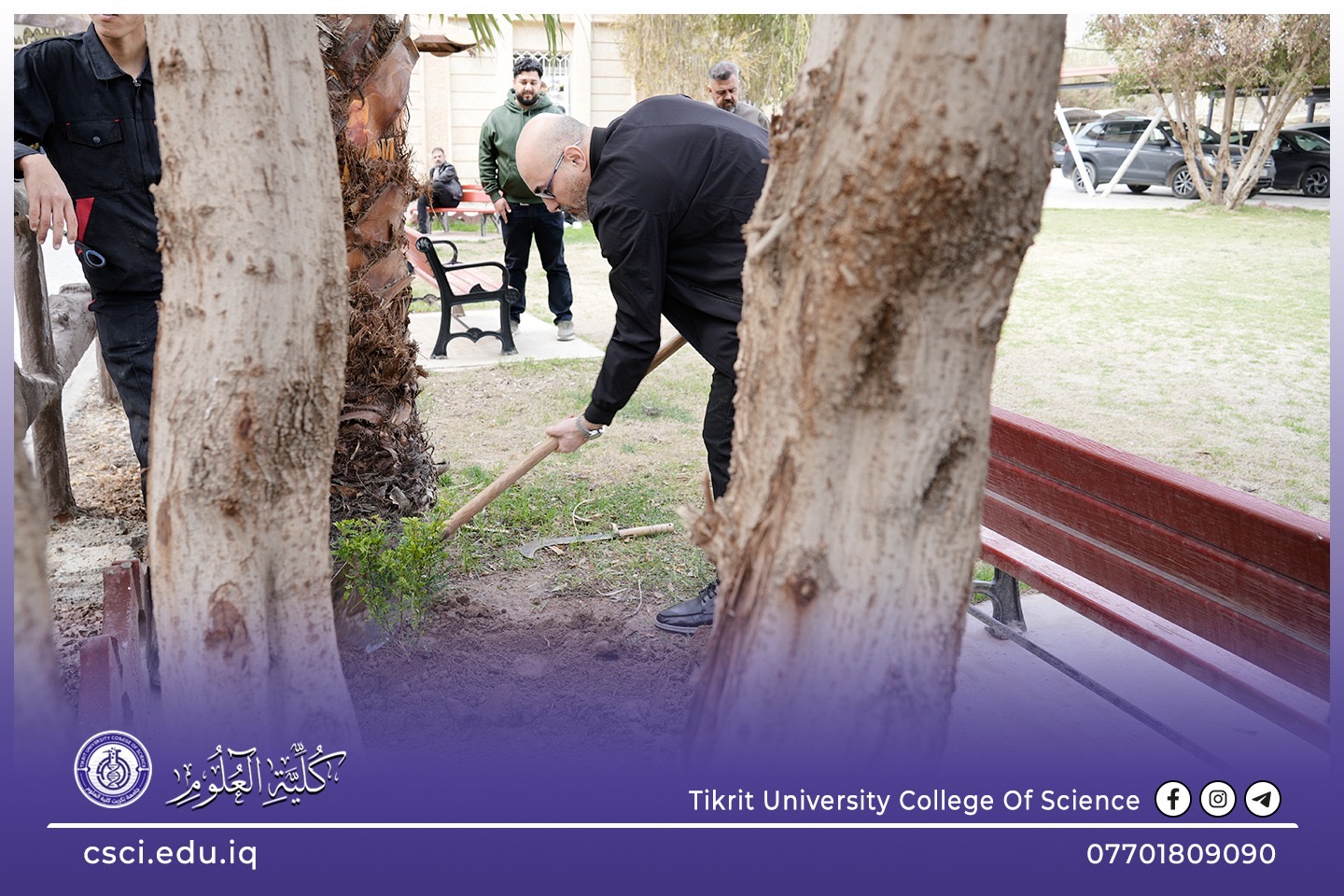 استناداً الى توجيهات رئاسة جامعة تكريت وبأشراف مباشر من الاستاذ الدكتور عبد الخالق علوان محيميد وبمناسبة يوم التشجير الوطني شرعت كلية العلوم اليوم بحملة تشجير واسعة تضمنت زراعة الشتلات والاشجار المختلفة في جميع اروقة وحدائق الكلية لاحياء هذا اليوم ضمن نهج الجامعة في زيادة المساحات الخضراء و الاهتمام بالبيئة وتقليل آثار التصحر.