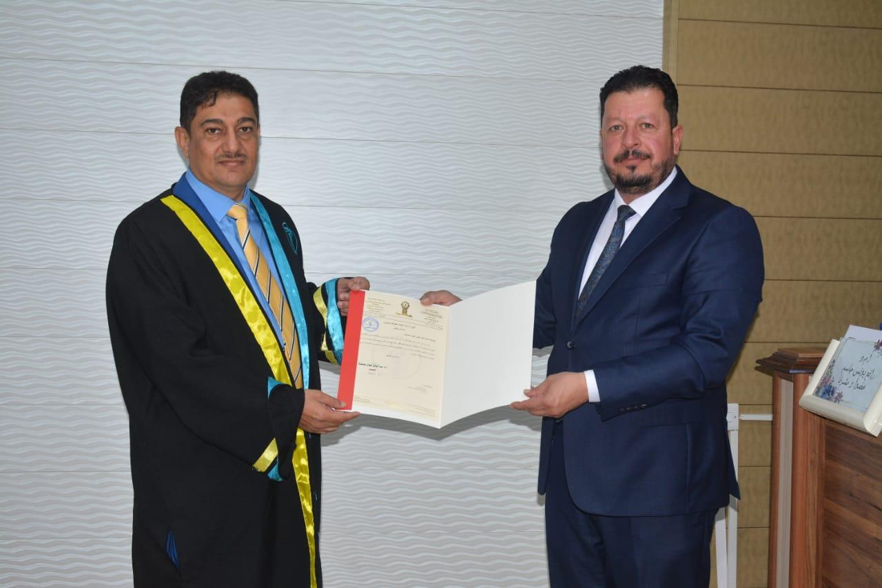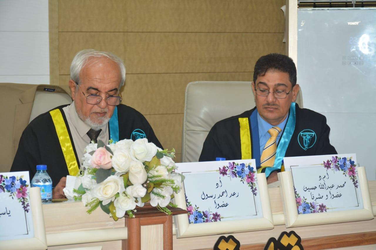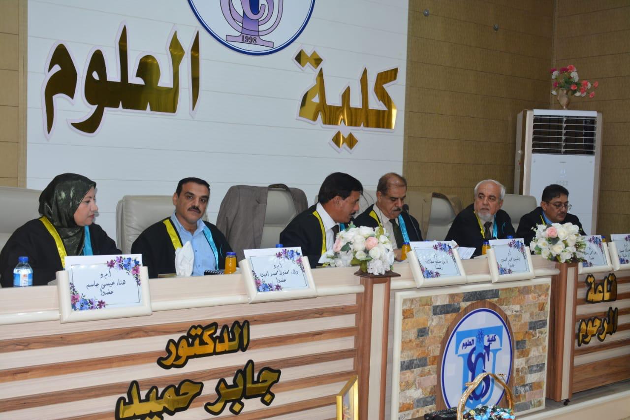 نوقشت في كلية العلوم قسم علوم الفيزياء اطروحة الدكتوراه (ابتكار عدسة مركبة شيئية للمجهر الإلكتروني واستقصاء خواصها البؤرية) للباحثة (رباب شكور علي موسى)