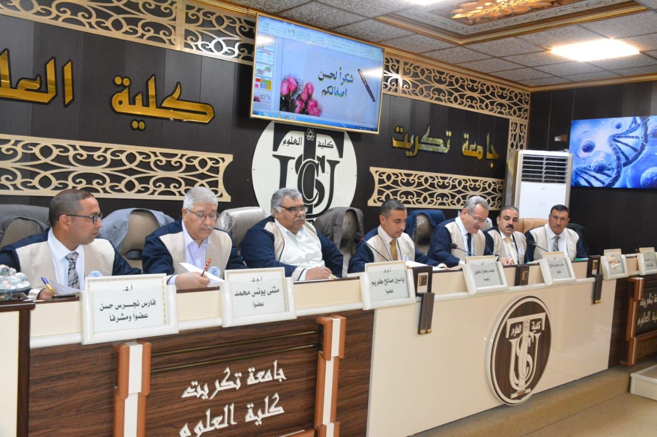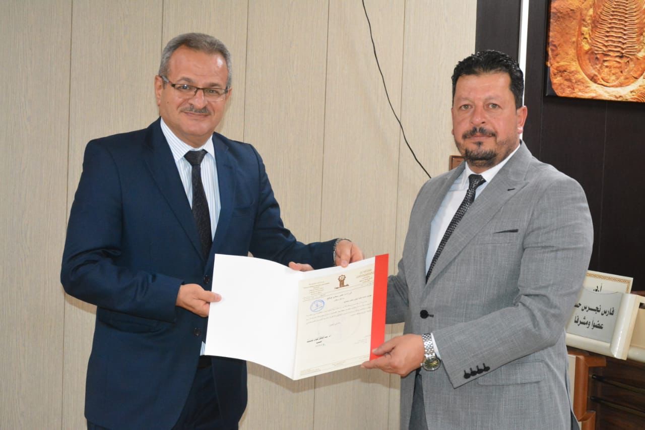 نوقشت في كلية العلوم قسم علوم الارض اطروحة الدكتوراه (دراسة رسوبية وطباقية ومكمنية لتتابعات (Turonian – Lower Campanian) في آبار مختارة من حقل باي حسن – شمال العراق) للطالب (عمر محمود عمر علاوي)