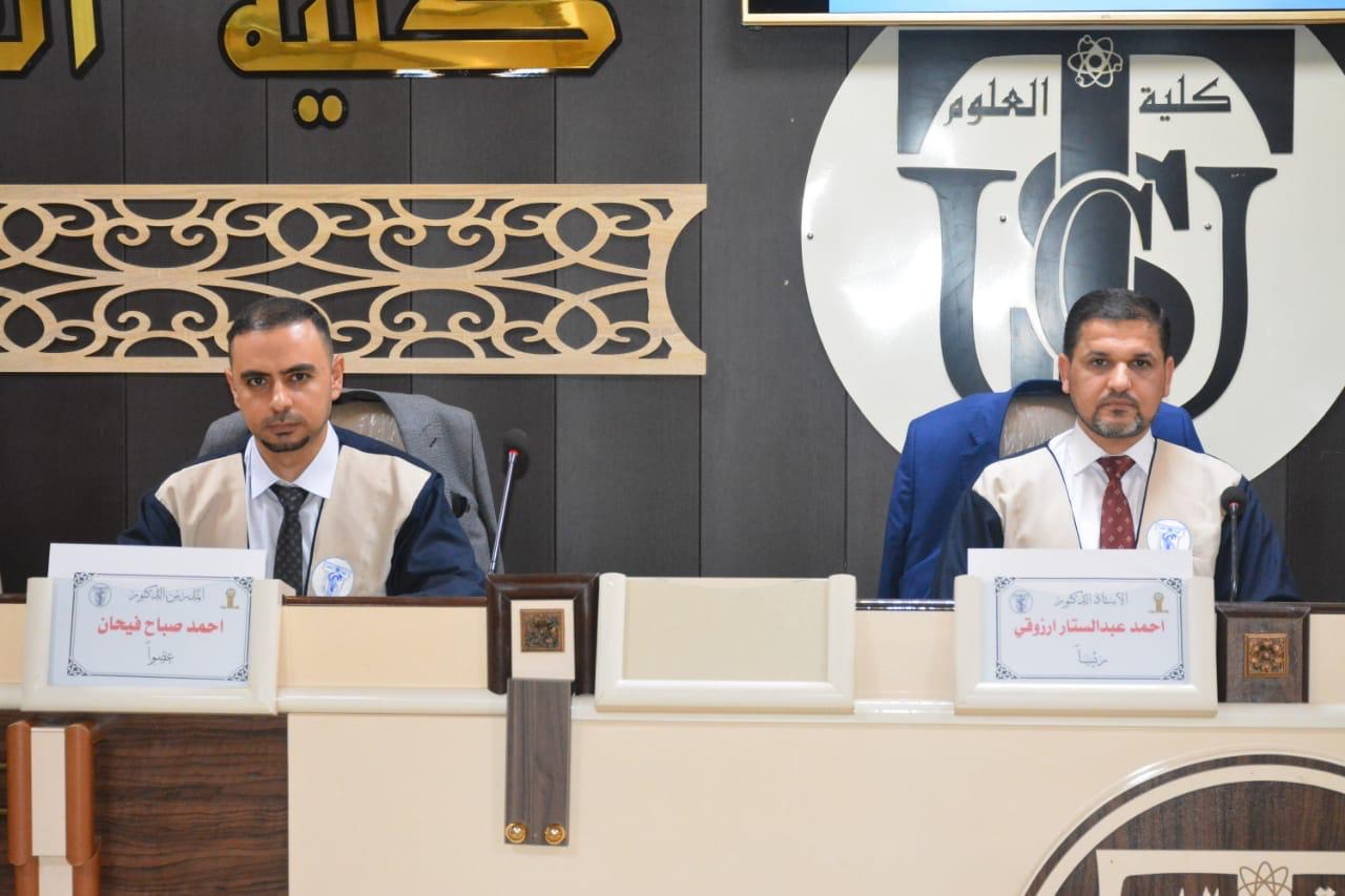 نوقشت في كلية العلوم قسم علوم الكيمياء رسالة الماجستير (تحضير وتشخيص طيفي وتقييم الفعالية الحيوية لعدد من معقدات الأيونات الفلزية الثنائية مع ليكاندات قواعد شف) للباحثة (رسل عدي خالد)