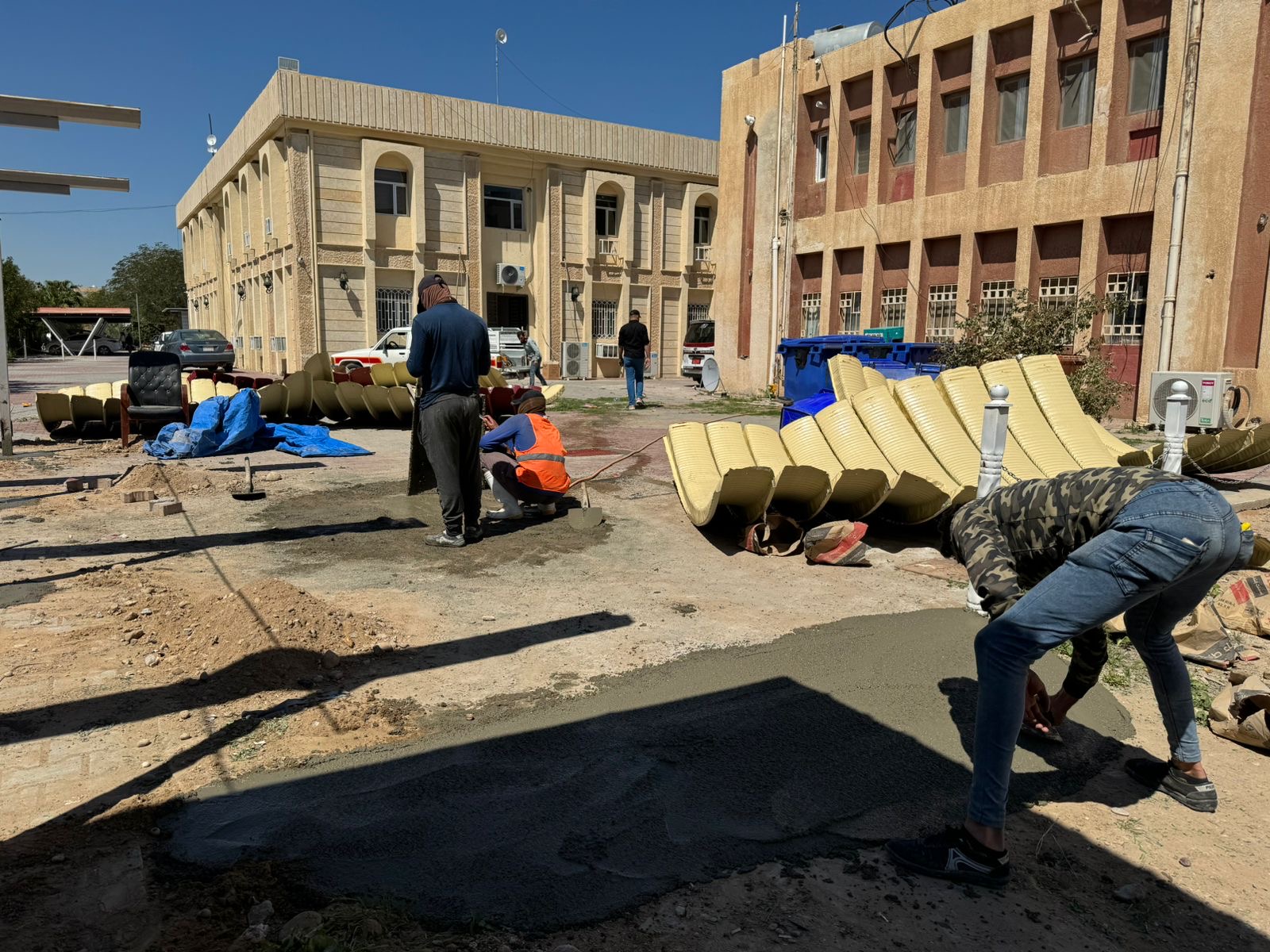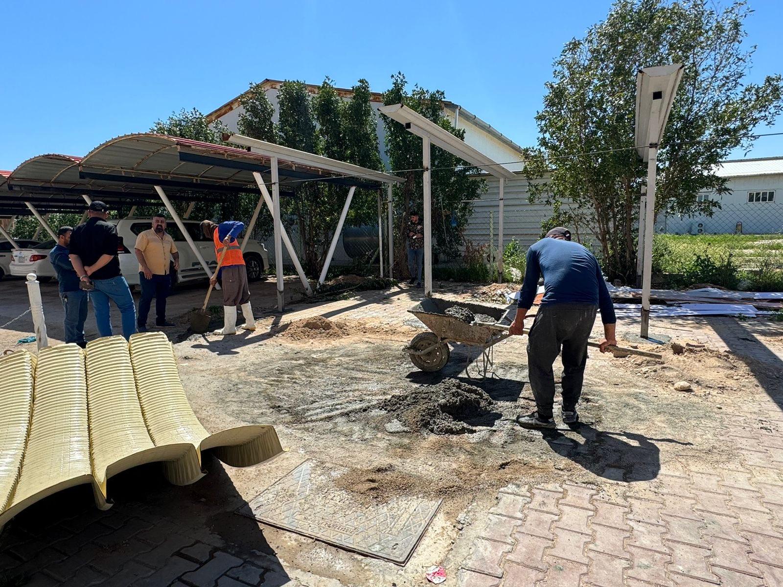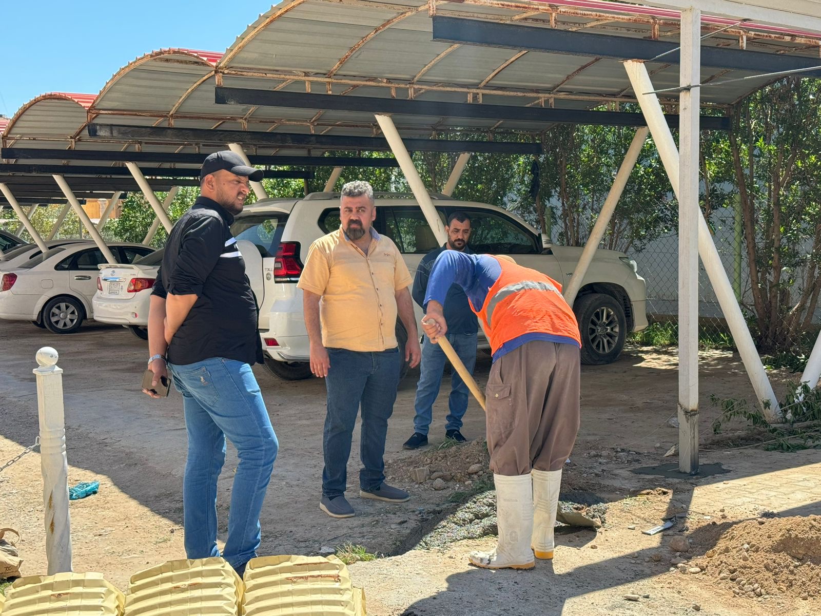 تنفيذاً لتوجيهات الاستاذ الدكتور عبد الخالق علوان محيميد عميد كلية العلوم وضمن سلسلة الجولات اليومية اشرف الدكتور علي حسين الطيف معاون العميد للشؤون الادارية على نصب وتهئية سقائف وقوف عجلات الموظفين الخاصة بالكلية واعمال ترصيف الطريق مؤگداً على الاسراع بأنجاز العمل بأسرع وقت ممكن.
