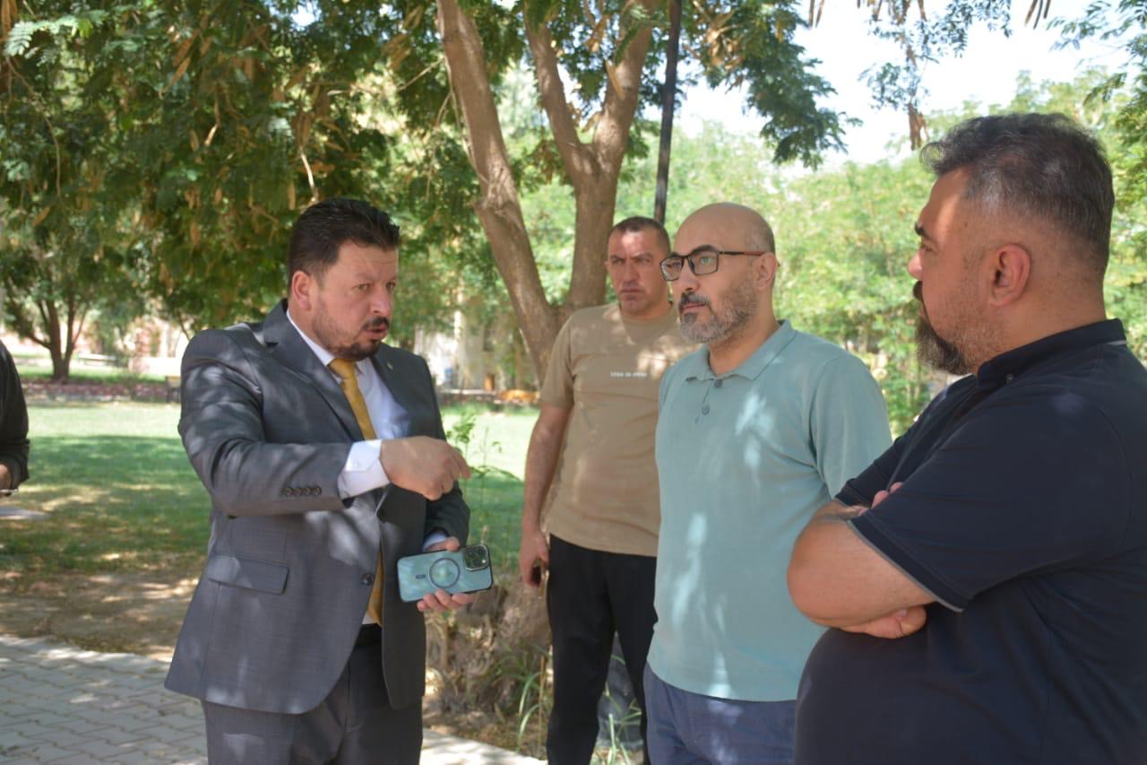 اجرى الاستاذ الدكتور عبد الخالق علوان محيميد عميد الكلية برفقة الاستاذ المساعد الدكتور علي حسين الطيف معاون العميد للشؤون الادارية والاستاذ المساعد الدكتور ايمن عدوان رئيس قسم علوم الحياة جولة تفقدية في اروقة الكلية للاطلاع الميداني على اعمال قص وتنظيف حدائق الكلية