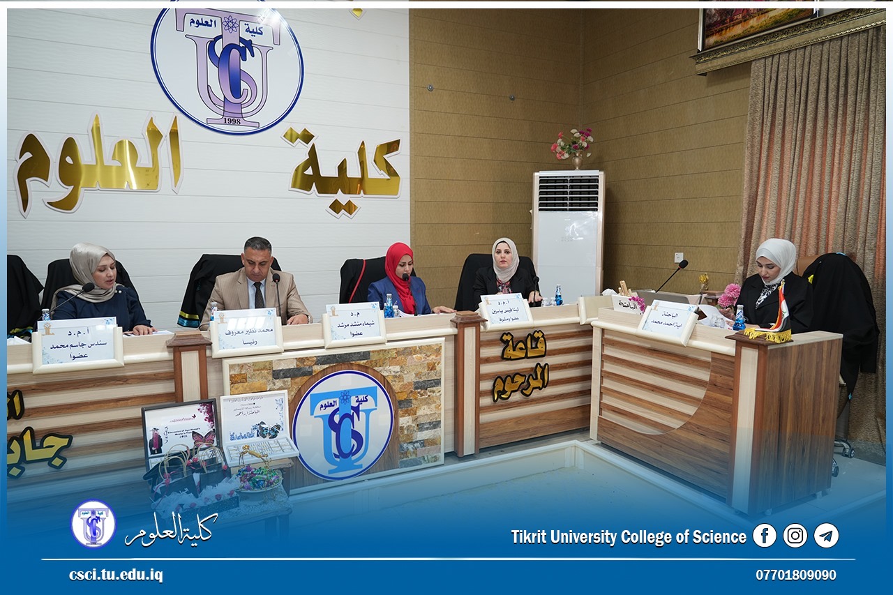 نوقشت في كلية العلوم قسم علوم الحياة اطروحة الدكتوراه (التصنيع الاخضر لبعض الدقائق النانوية من مستخلص اوراق التين والزيتون ودراسة فعاليتها التثبيطية على البكتريا المسببة لتسوس الاسنان لدى الاطفال) للباحثة (ايه محمد احمد)