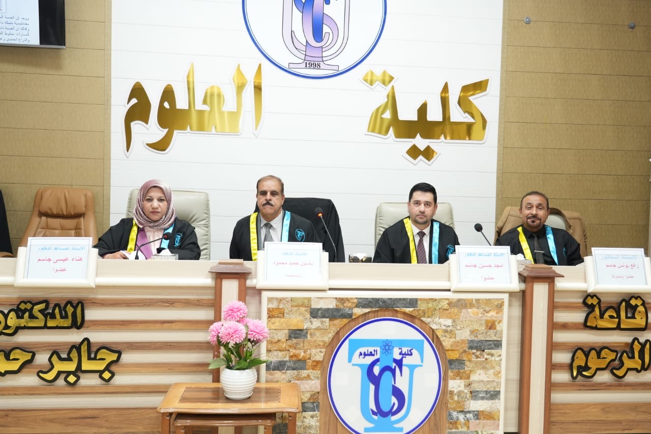 نوقشت في كلية العلوم قسم للفيزياء رسالة الماجستير (دراسة تأثير الشكل الهندسي للذراع الحديدي و الملف المغناطيسي على الخواص البؤرية للعدسة الإلكترونية) للباحثة (جوان احمد محمد)